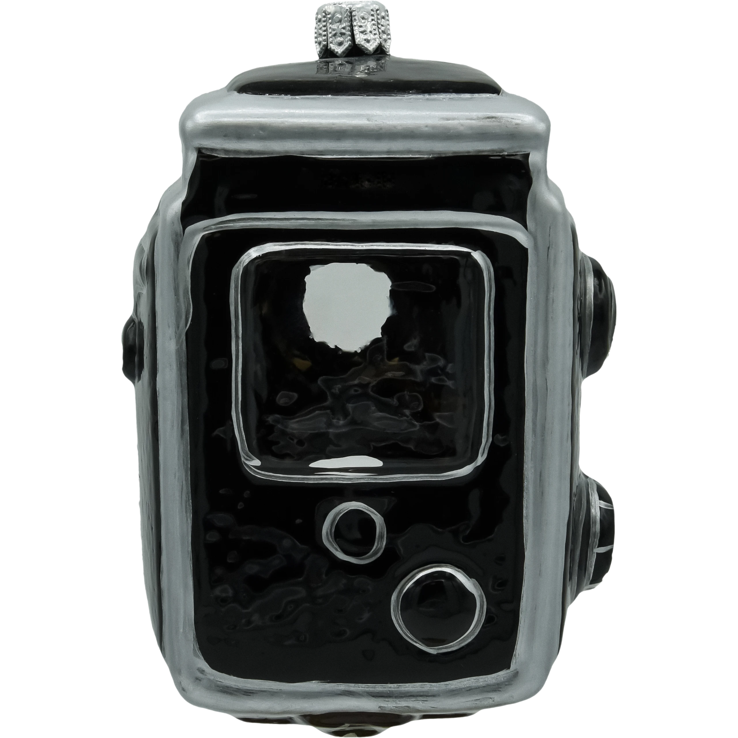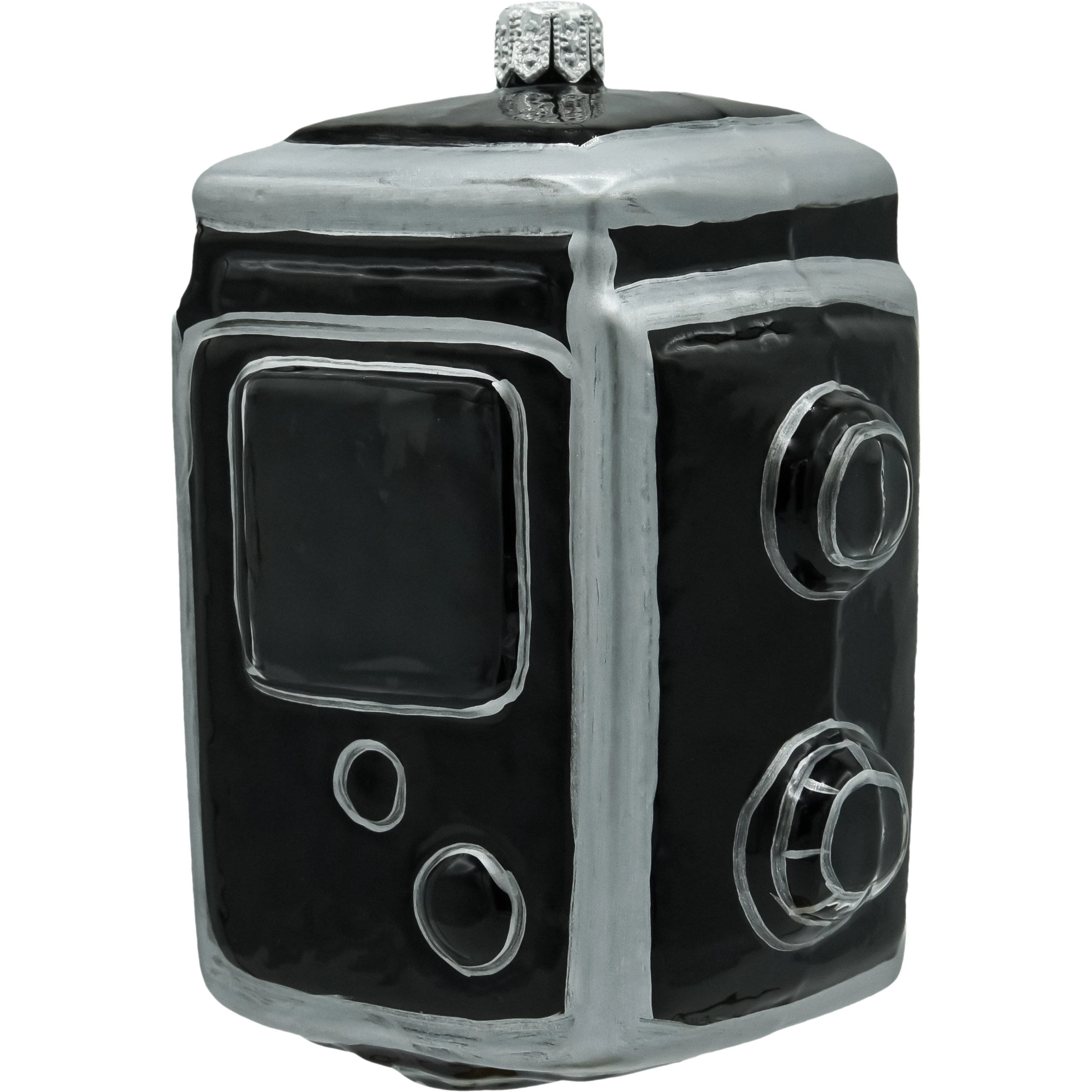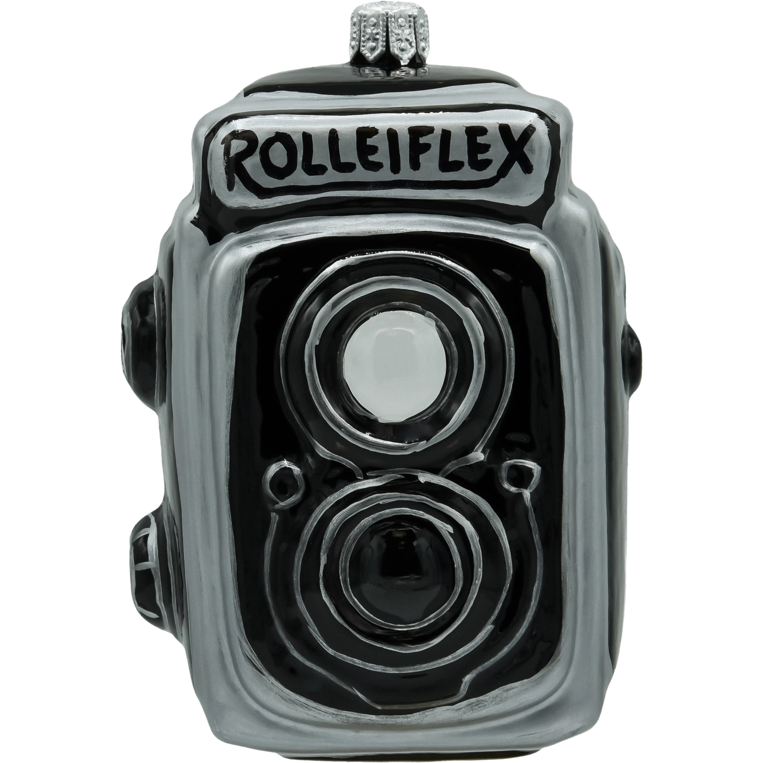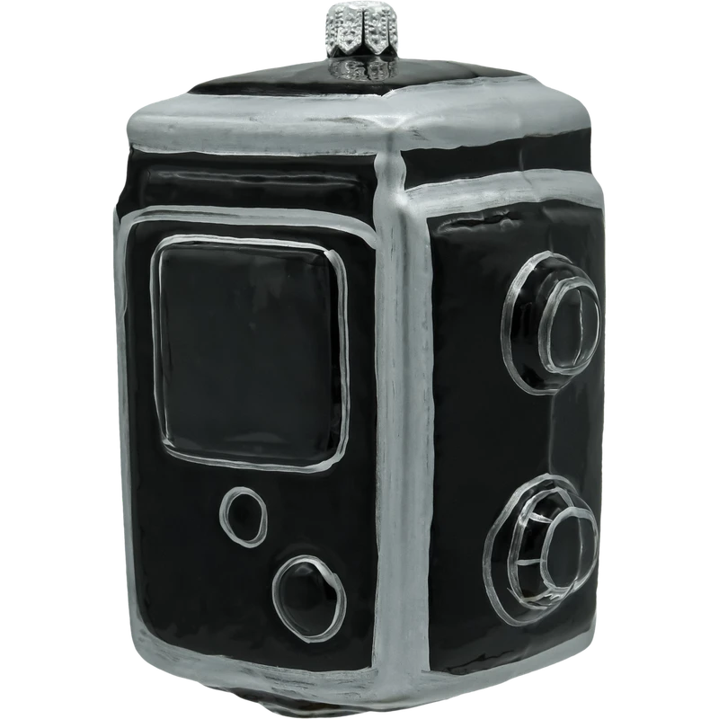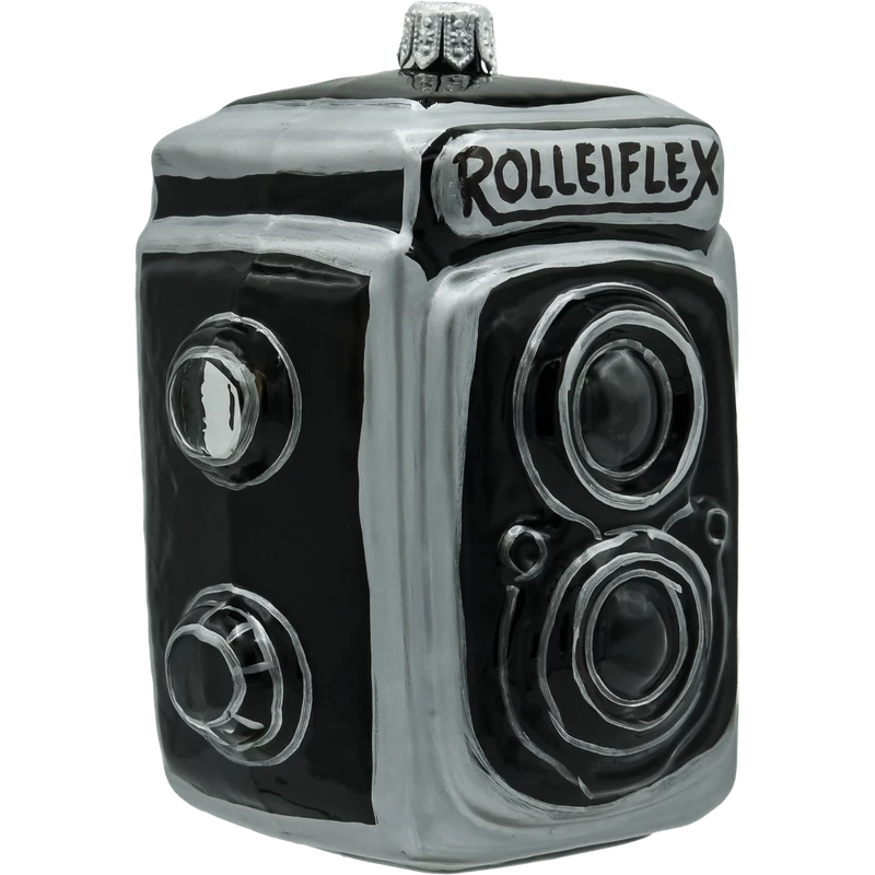 Oryginalna szklana bombka w kształcie aparatu fotograficznego to prawdziwa gratka dla miłośników fotografii i stylowych dodatków świątecznych. Ręcznie malowana, z dbałością o detale, wiernie odwzorowuje kultowy model Rolleiflex – od obiektywu po przyciski. Połyskująca czarno-srebrna kolorystyka oraz subtelne zdobienia dodają jej elegancji i charakteru retro. Ta wyjątkowa dekoracja idealnie wpisze się w świąteczny klimat, przyciągając uwagę na choince lub w kolekcji tematycznych ozdób. To także doskonały prezent dla fotografa lub fana designu vintage.