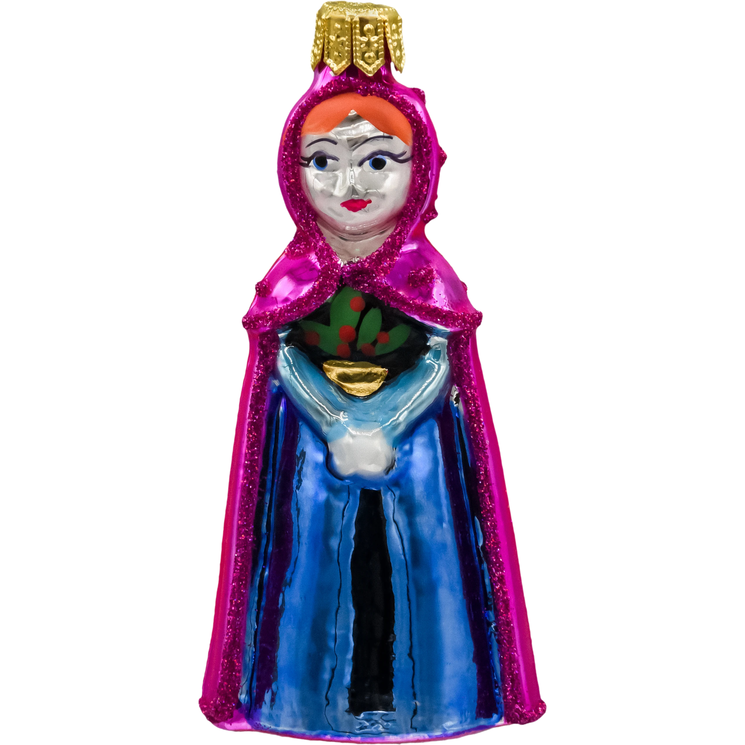 Każda bombka została wykonana ręcznie przez polskich rzemieślników, co gwarantuje unikalny charakter i wysoką jakość. Bombka stworzona jest z najwyższej jakości szkła, a każdy detal, od wyrazistej twarzy po wzory na sukni, został precyzyjnie namalowany, dzięki czemu ozdoba prezentuje się efektownie i dodaje choince wyrafinowanego stylu.