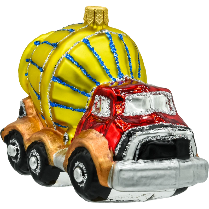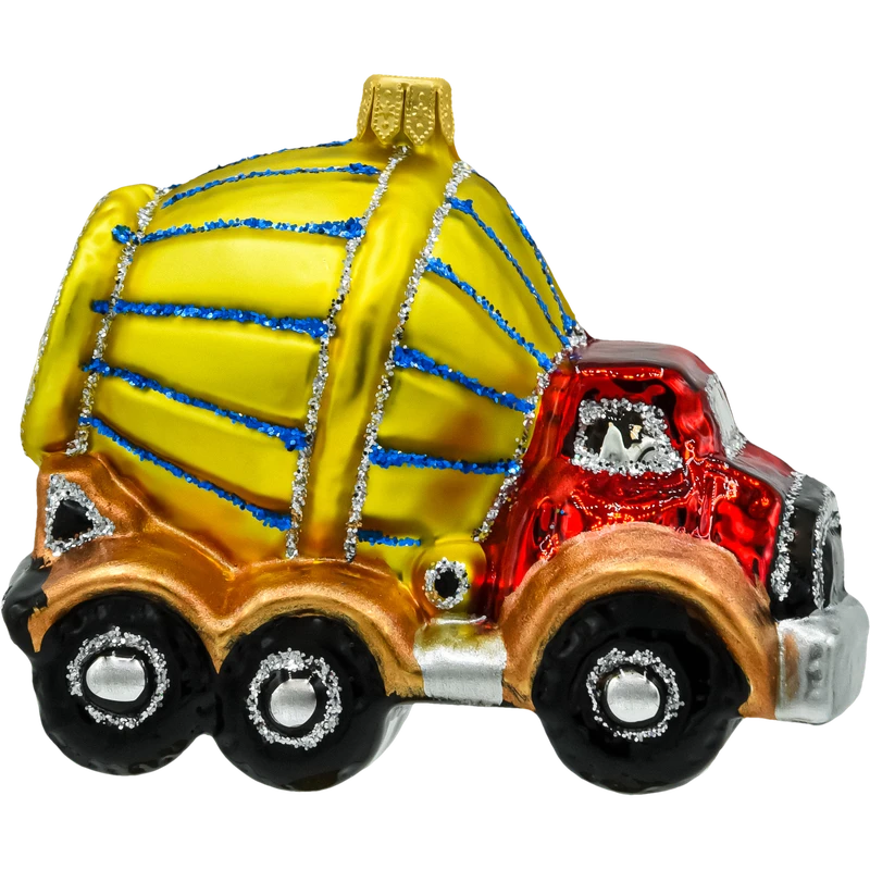Wprowadź nutę przemysłowego charakteru na swoją choinkę z tą oryginalną, ręcznie malowaną bombką szklaną w kształcie betoniarki! Wykonana z najwyższej jakości szkła, bombka ta przedstawia kolorową betoniarkę z żółtym bębnem i czerwoną kabiną, zdobioną srebrnymi i złotymi detalami. Intensywne kolory i szczegółowe wykończenie sprawiają, że jest to nietuzinkowy dodatek, który wyróżni się na choince i doda świątecznej aranżacji unikalnego charakteru.