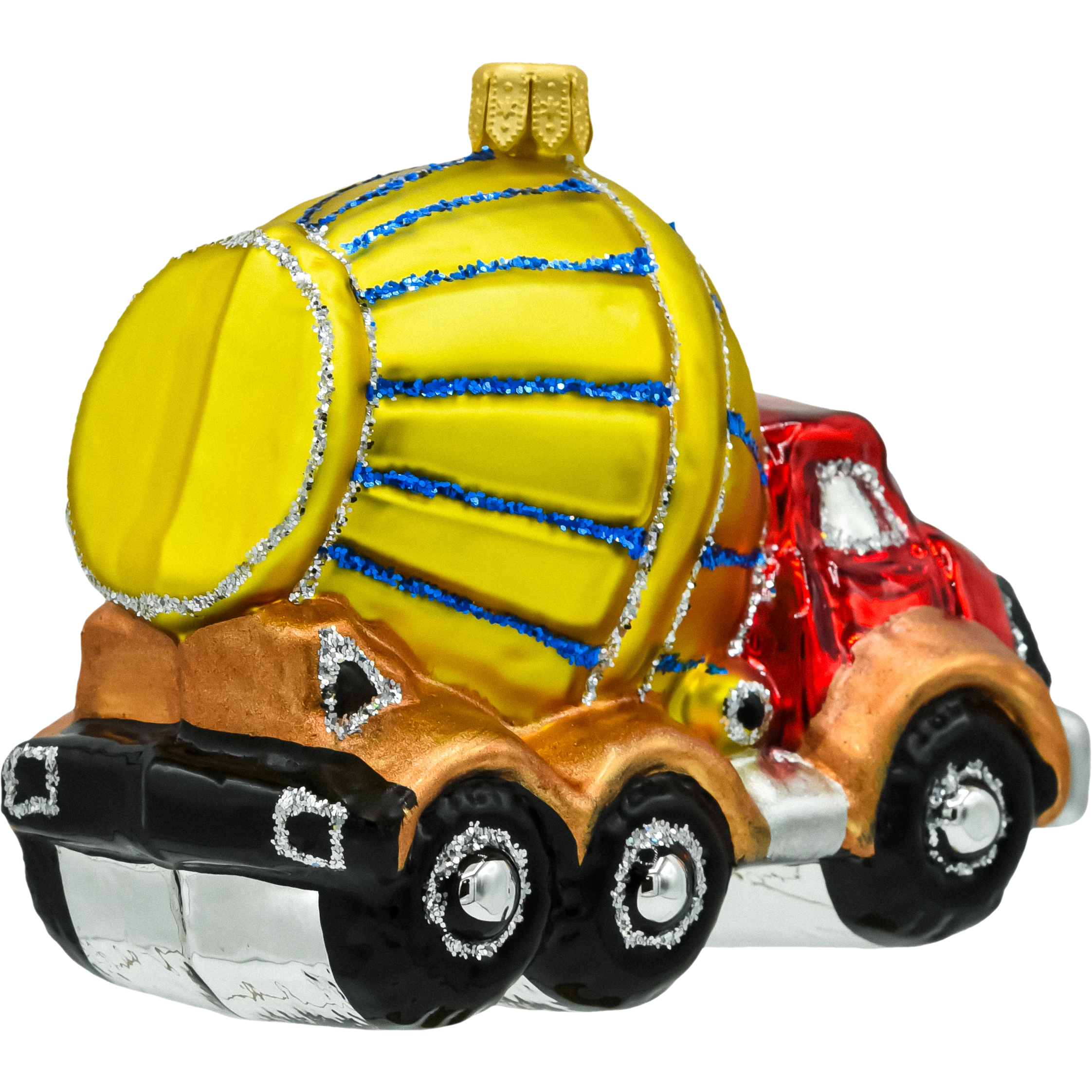 Wykończenie: Ręcznie malowane detale – każdy element, od bębna betoniarki po reflektory, został starannie pomalowany, co nadaje bombce realistyczny wygląd i wyjątkowy charakter.