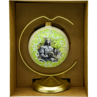 Zanurz się w zimowym klimacie Dolnego Śląska! Ręcznie malowana bombka szklana „Świdnica” przedstawia urokliwe, kolorowe kamienice świdnickiego rynku, osadzone w nastrojowej, śnieżnej scenerii z dwoma choinkami na pierwszym planie. To elegancka ozdoba choinkowa 10 cm i całoroczna pamiątka ze Świdnicy, którą możesz eksponować nie tylko na choince – w komplecie otrzymujesz metalowy stojak w kolorze złota, dzięki czemu bombka pięknie zaprezentuje się także na komodzie, biurku czy w witrynie.