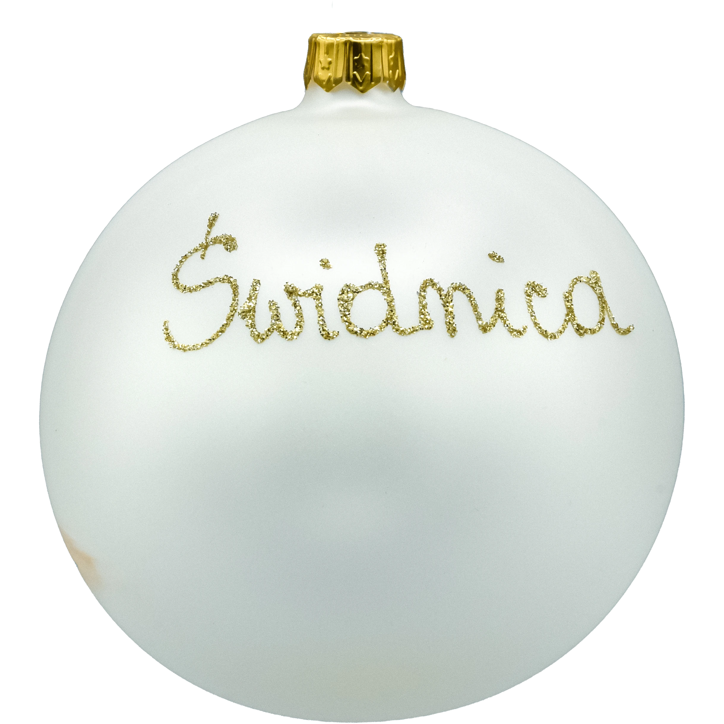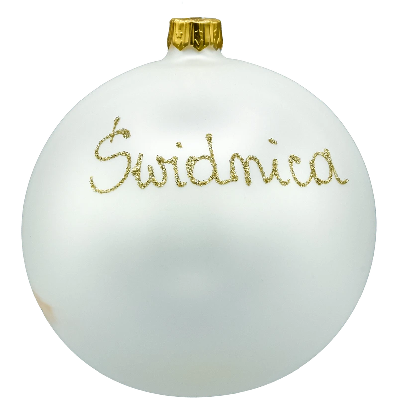 • Napisy rewersu – z tyłu bombki widnieje brokatowy napis „Świdnica”, co podkreśla kolekcjonerski, pamiątkowy charakter.