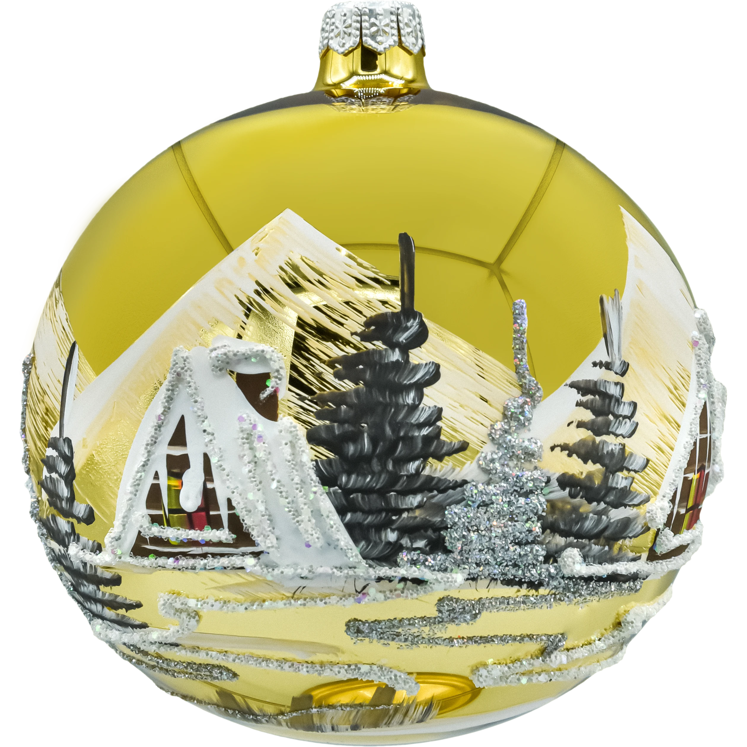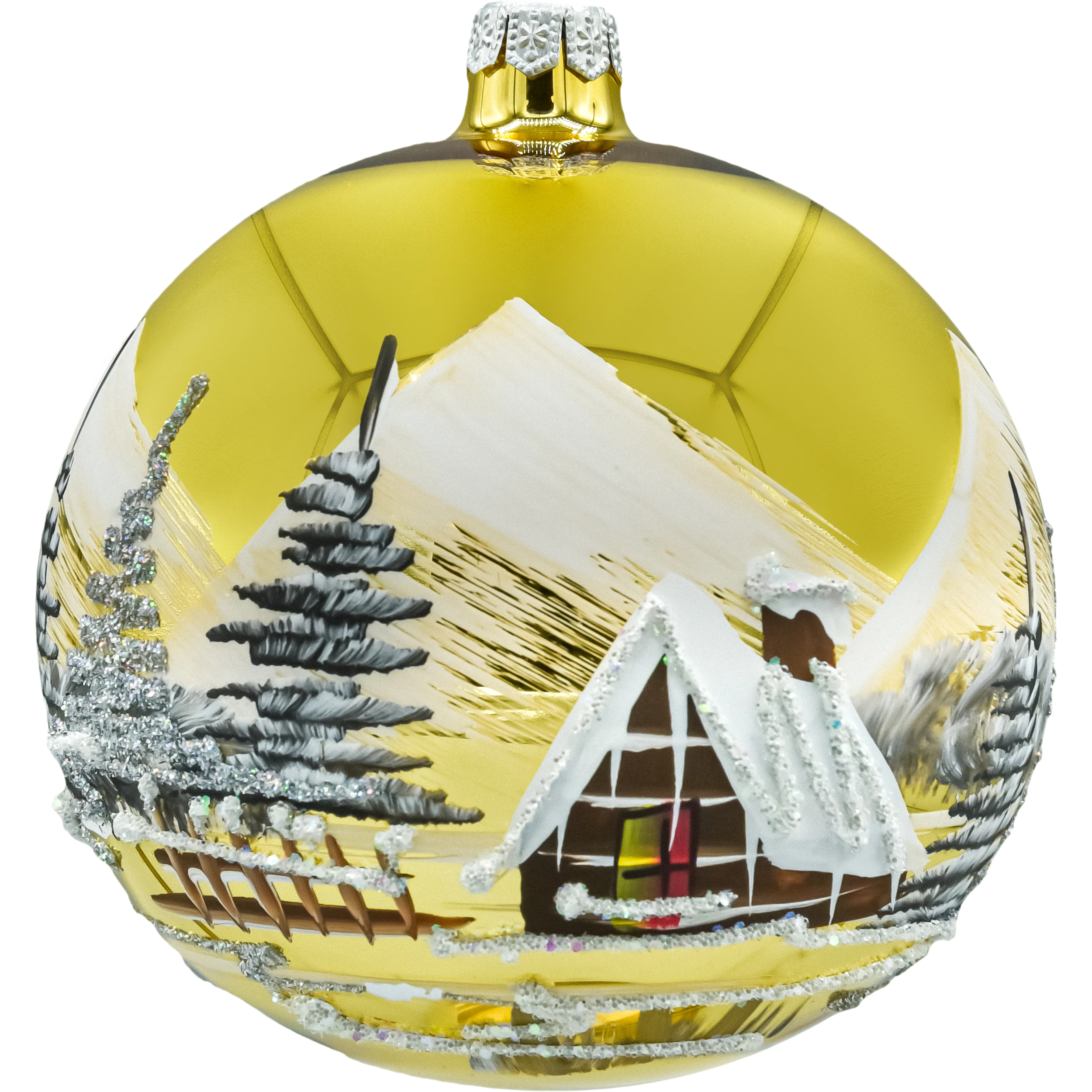 • wykończenie: złota powierzchnia + ręcznie malowany zimowy pejzaż z brokatowymi akcentami