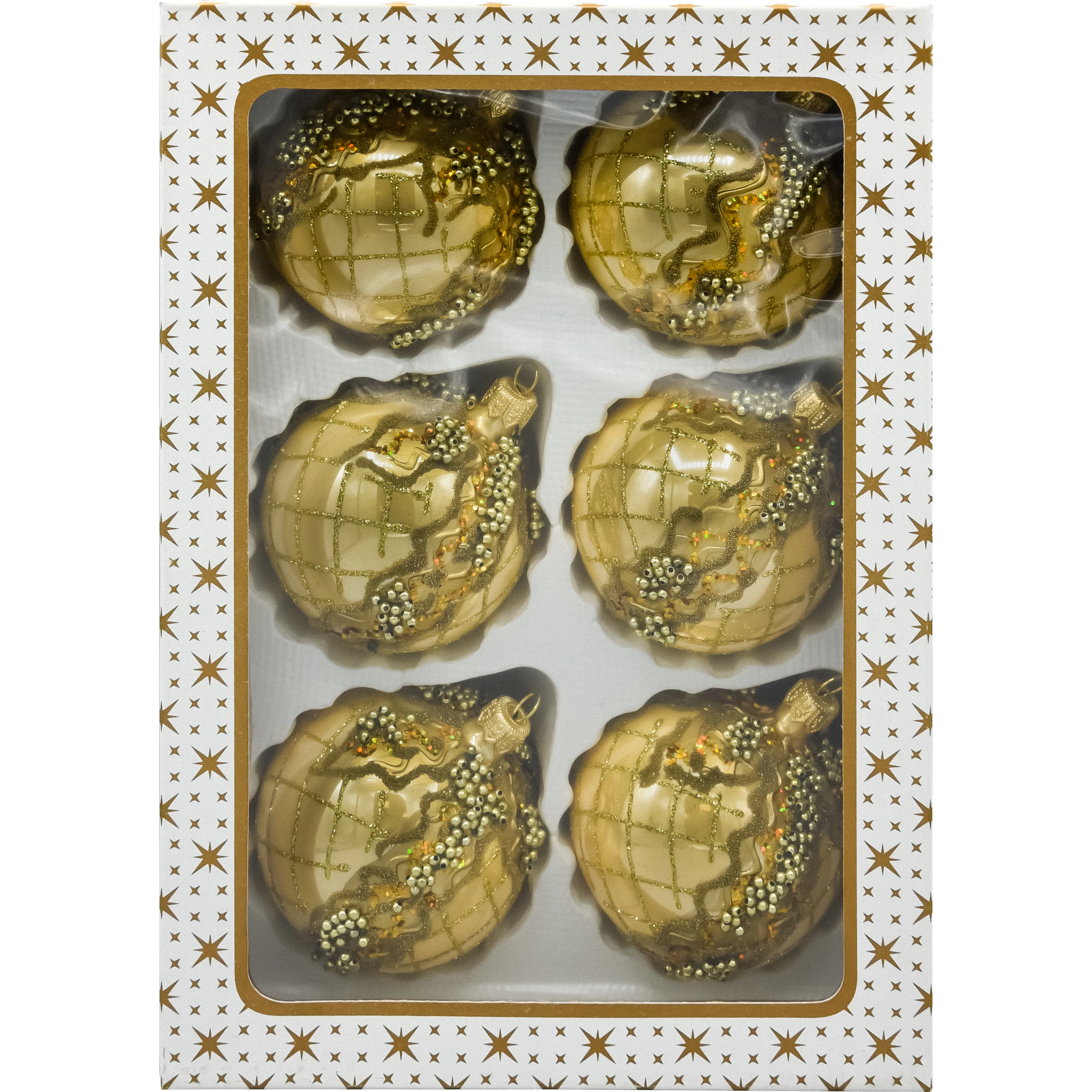 Bombka złota Vintage z bogatymi zdobieniami: 6 sztuk