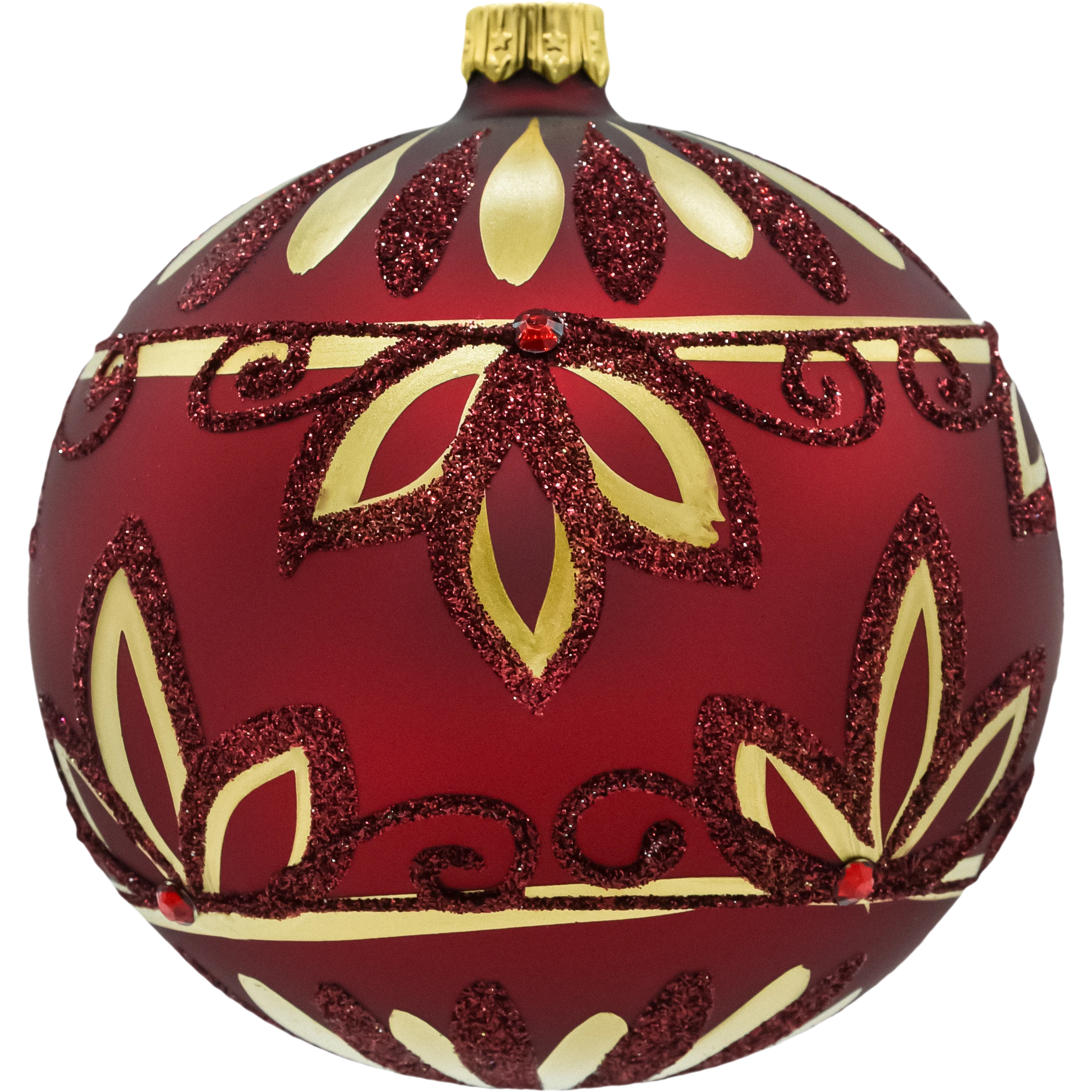 kula matowa z złotym, brokatowym ornamentem (kwiatowy motyw, drobne kamyczki),