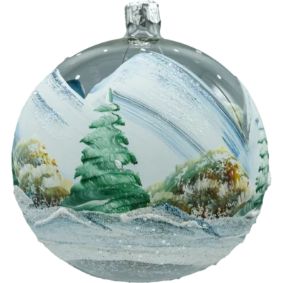 • Zdobienie: reliefowy ornament roślinny, mikrokulki i brokat o drobnym ziarnie, aplikowane punktowo śnieżne kropki.