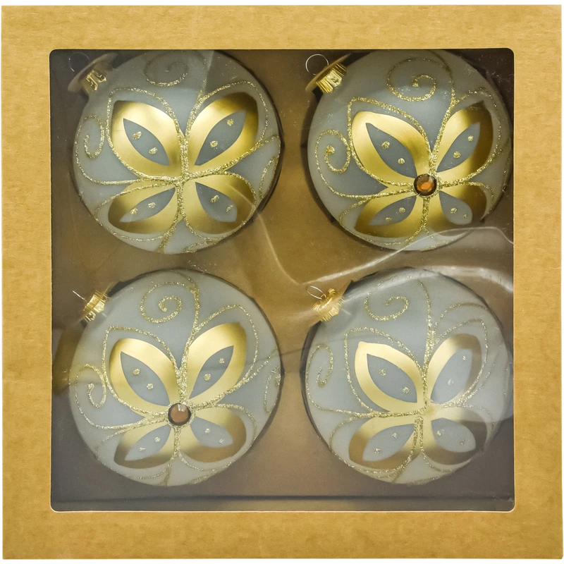 Rozmiar: średnica bombki z serii 4-pak – idealna na choinki domowe i dekoracje (najpopularniejszy rozmiar ok. 10 cm).