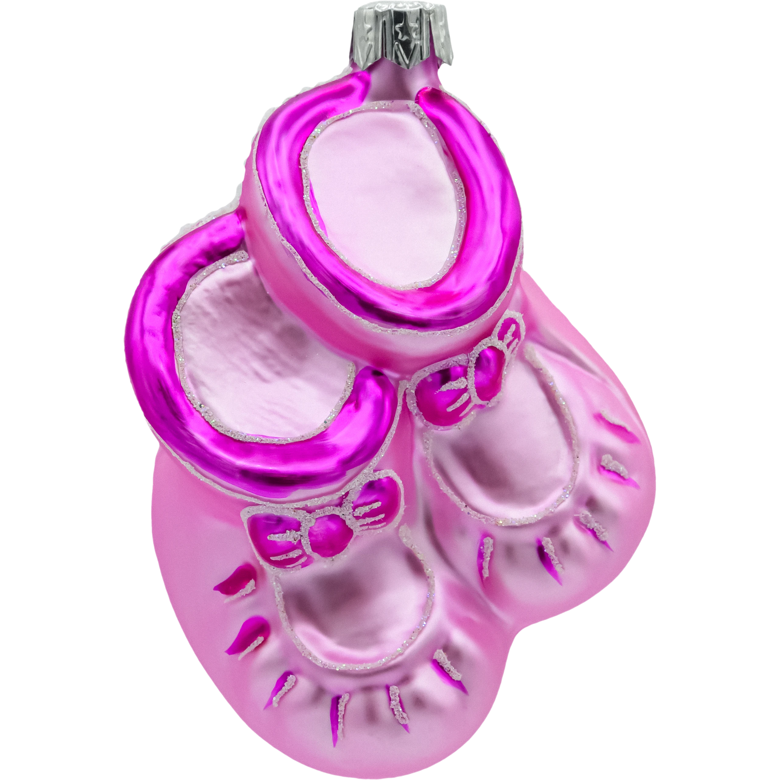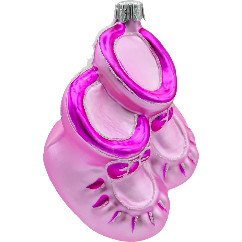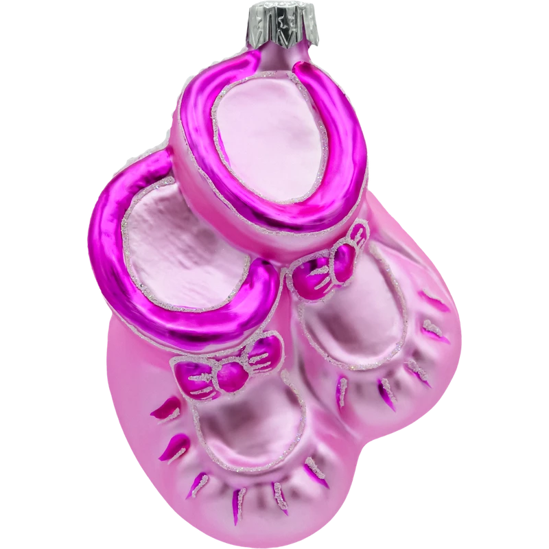 Uroczy design: Kształt różowych bucików z subtelnymi zdobieniami to wyjątkowy motyw, który doda uroku każdej choince.