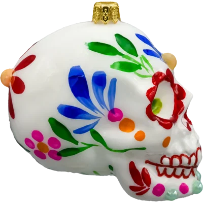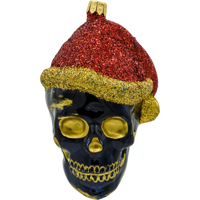 Wprowadź do swojego świątecznego wystroju oryginalny, mroczny akcent dzięki tej nietuzinkowej szklanej ozdobie w kształcie czaszki w czapce Świętego Mikołaja. To idealne połączenie klasycznej świątecznej symboliki z gotyckim, alternatywnym stylem, co czyni ją doskonałym wyborem dla miłośników unikalnych i niebanalnych dekoracji choinkowych.