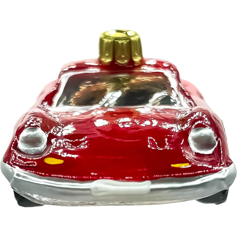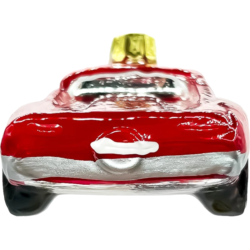 Design: Bombka przedstawia sportowy samochód w kolorze intensywnej czerwieni, z charakterystycznymi srebrnymi i chromowanymi akcentami, które nadają jej elegancji. Dokładnie odwzorowane linie nadwozia, reflektory i detale wnętrza nadają jej realistyczny wygląd.