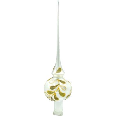 Starannie wyprofilowana, smukła forma szpica przechodzi w kulistą podstawę, idealnie komponującą się z klasyczną sylwetką choinki. Brokatowe akcenty pięknie odbijają światło lampek, a delikatny połysk szkła dodaje wnętrzu magicznej atmosfery.