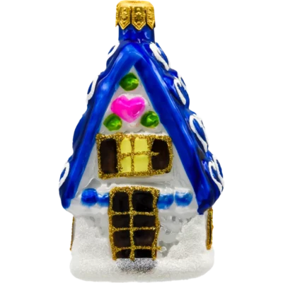 Dekoracje: Ręcznie malowane okna i dach, pokryty brokatowym „śniegiem”, co dodaje realizmu i świątecznego blasku