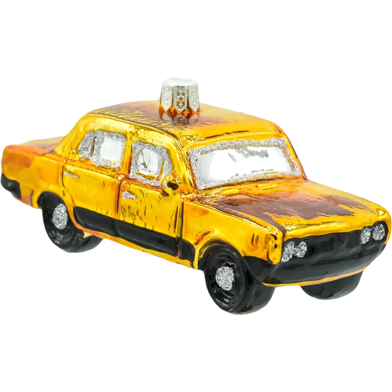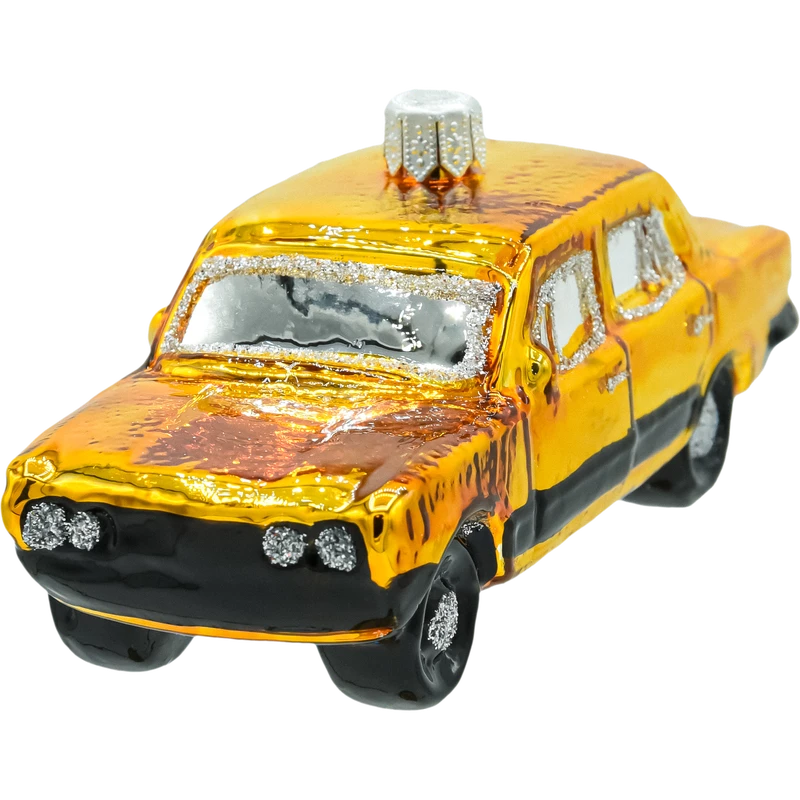 Przenieś świąteczne drzewko w czasy PRL! Ta ozdoba choinkowa w kształcie kultowego Fiata 126p (malucha) przyciąga wzrok intensywnie żółtym lakierem, czarnym pasem i srebrzystymi „chromami” przy szybach oraz zderzakach. Każdy detal jest ręcznie malowany i podkreślony drobnym brokatem, dzięki czemu bombka pięknie odbija światło lampek. Dmuchane szkło sprawia, że dekoracja jest lekka i nie obciąża gałązek, a metalowy kapturek z oczkiem ułatwia szybkie zawieszenie na choince.
