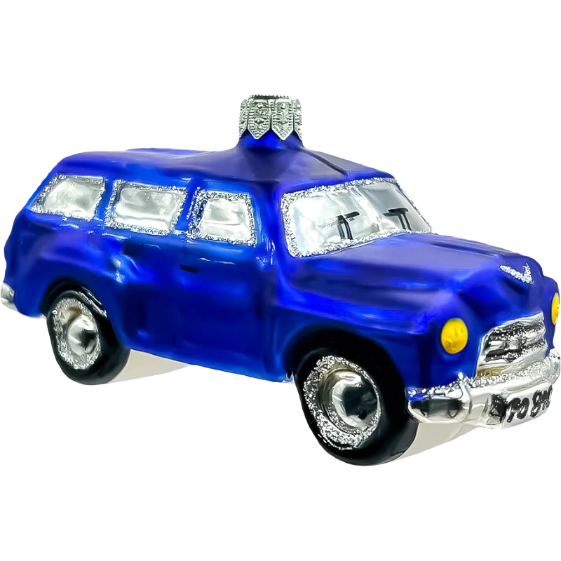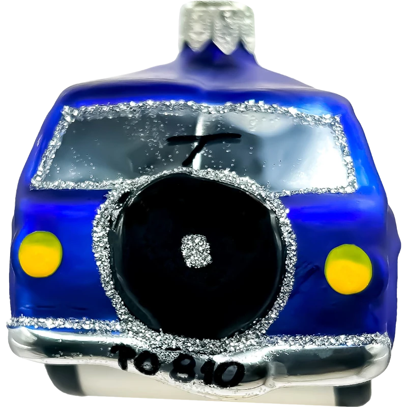 Niebieski samochód retro przywołuje wspomnienia dawnych podróży i stanowi symbol ponadczasowego stylu. Intensywny niebieski kolor i błyszczące, srebrne akcenty tworzą harmonijną kompozycję, która wyróżnia się na choince, dodając jej wyjątkowego charakteru i stylu.