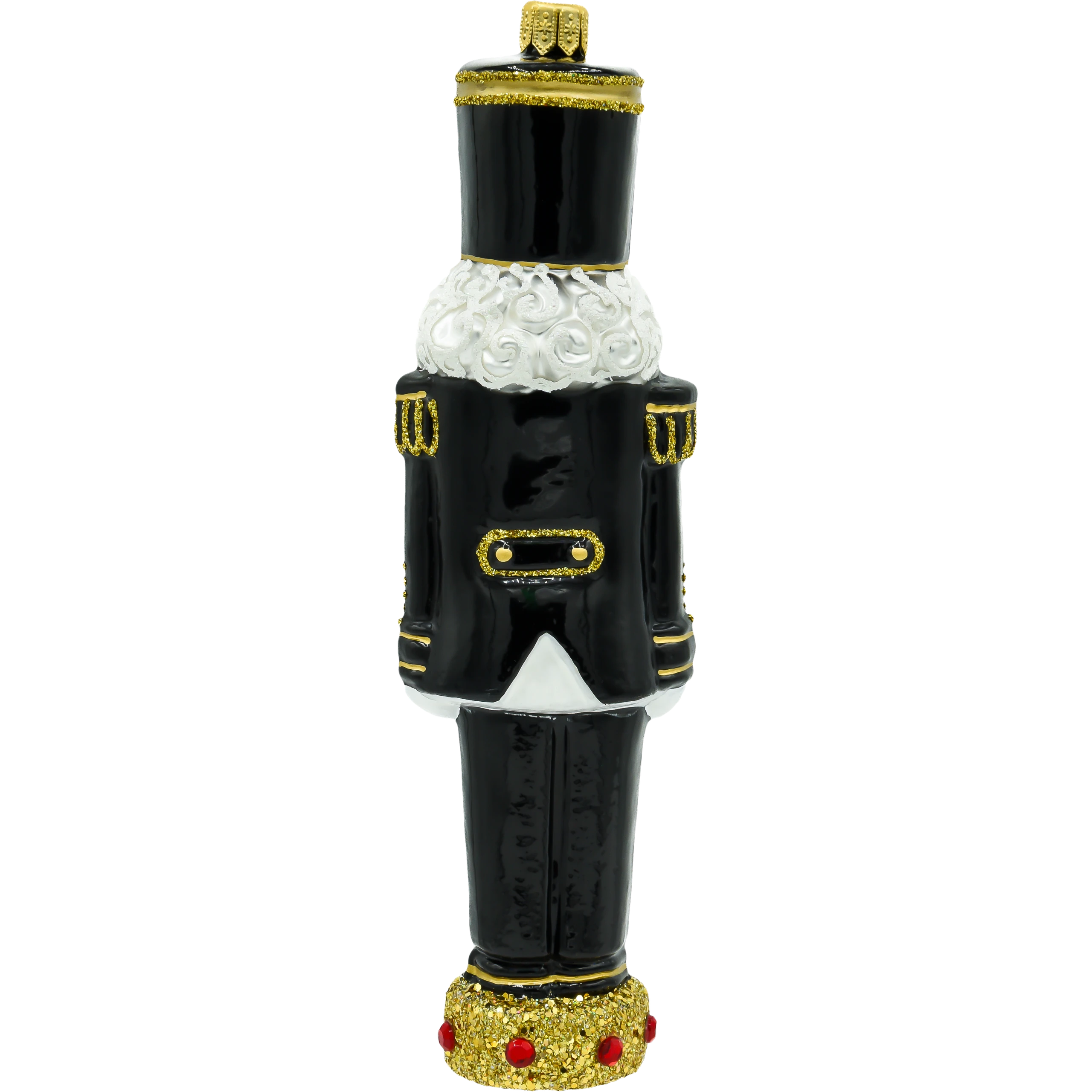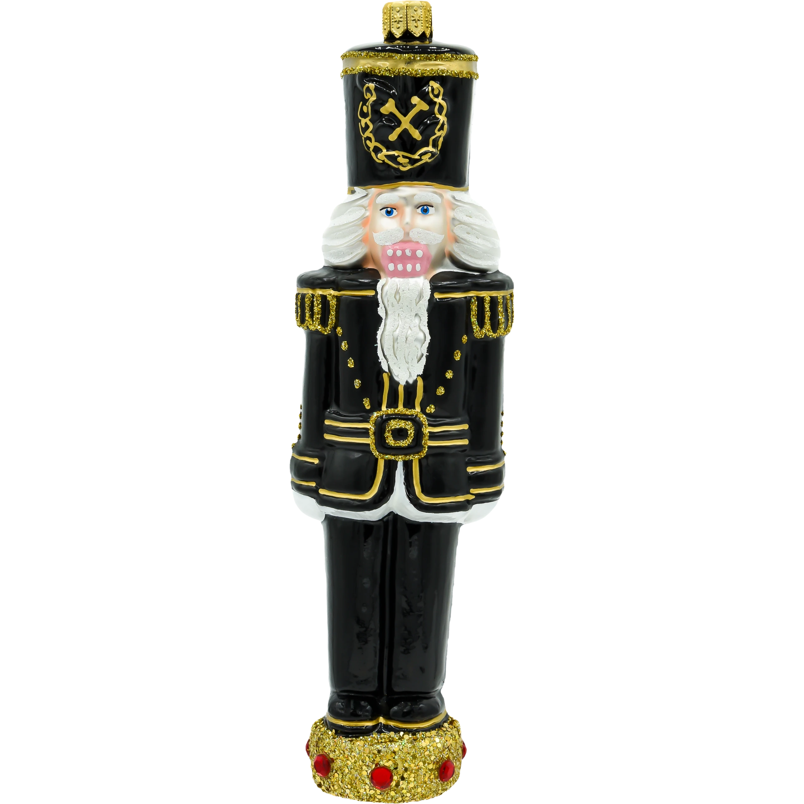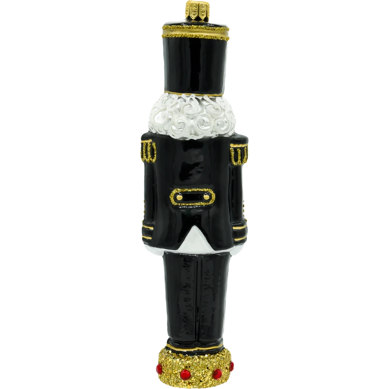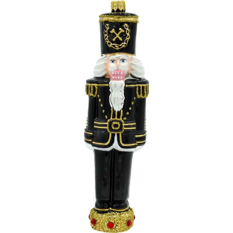 Bombka „Dziadek do orzechów – Górnik w galowym mundurze” to wyjątkowa ozdoba świąteczna, która łączy w sobie magię klasycznego motywu dziadka do orzechów oraz symbolikę górniczego stroju galowego. Wykonana z najwyższej jakości szkła i ręcznie malowana, ta bombka zachwyca elegancją i precyzją wykonania. Czarny mundur zdobiony złotymi akcentami, charakterystyczny czako z symbolem górniczym oraz detale, takie jak biała broda i ozdobna podstawka, tworzą wyjątkowy design, który doskonale wpisuje się w świąteczny klimat.