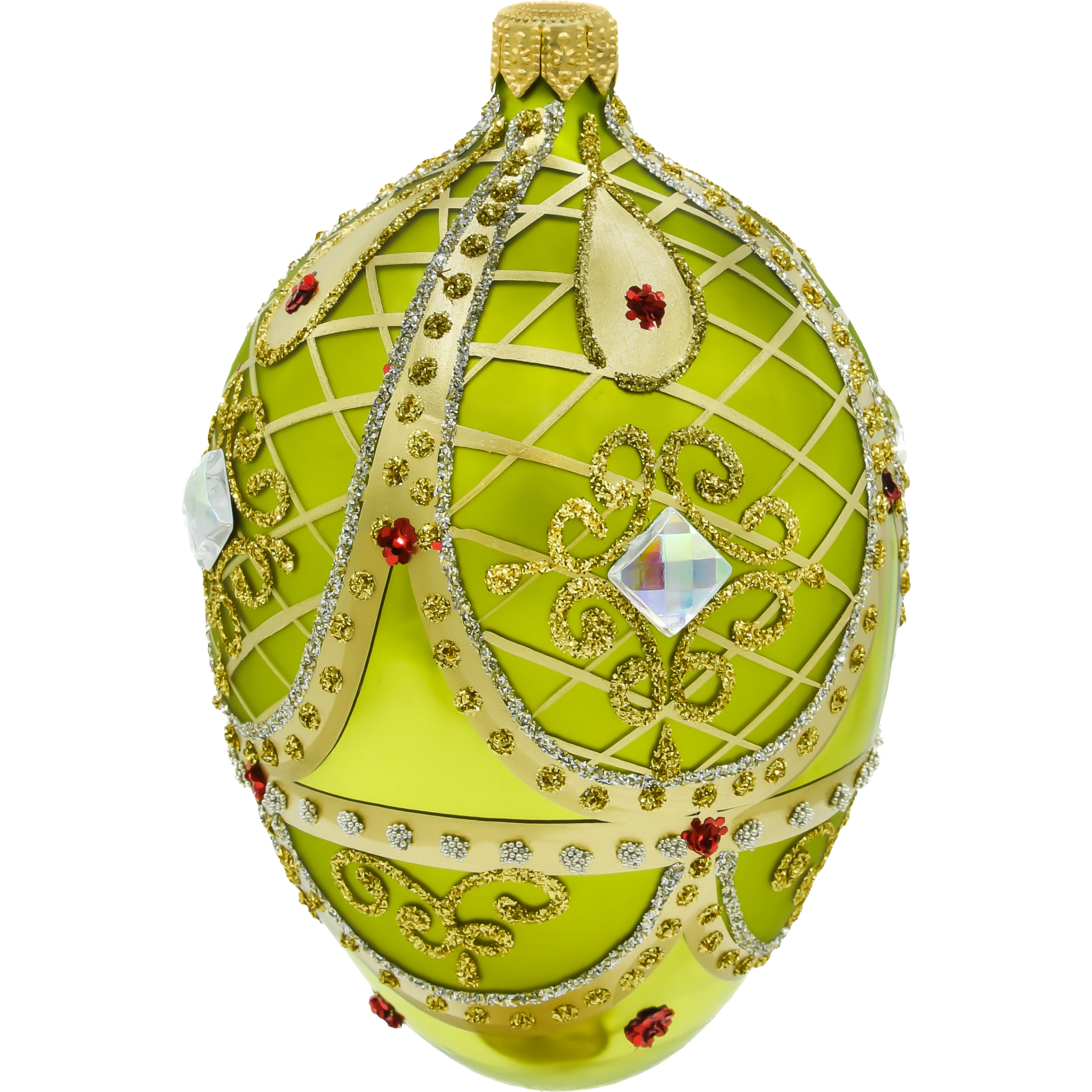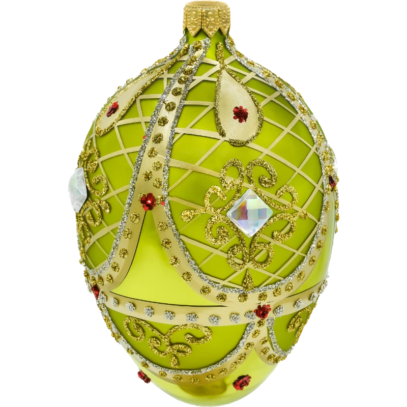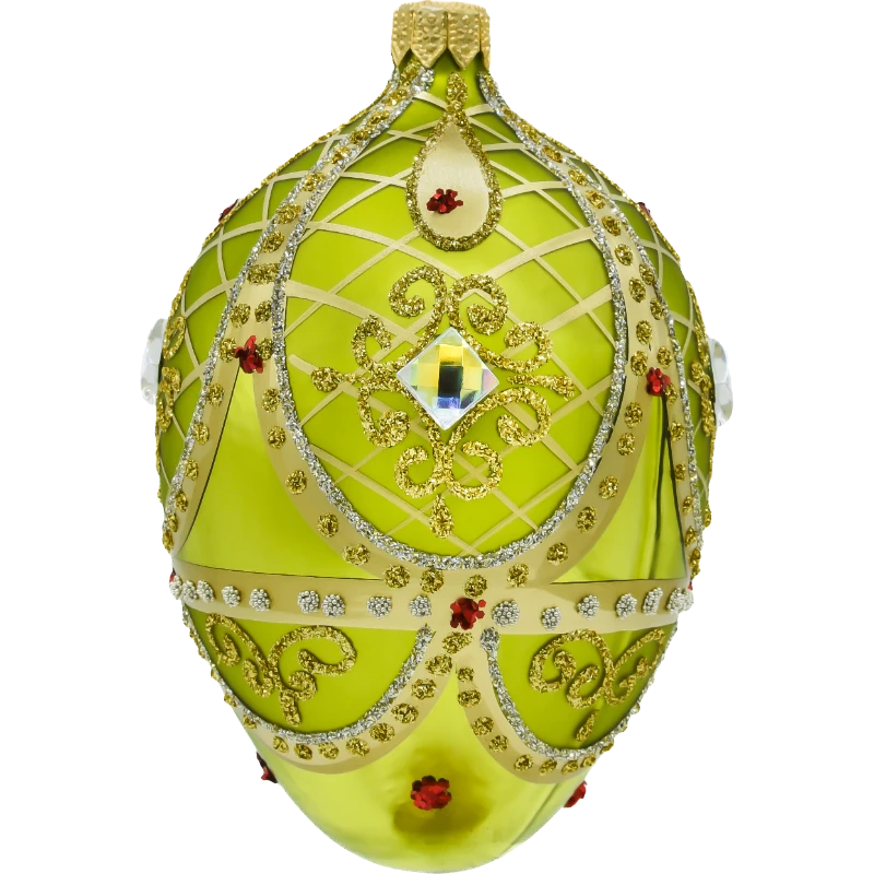 Szklane Jajo Fabergé w odcieniu głębokiej zieleni to idealne połączenie luksusu, elegancji i świątecznej tradycji. Jego unikatowy design oraz ręczne zdobienia sprawiają, że stanie się niezastąpionym elementem każdej aranżacji bożonarodzeniowej. Dodaj odrobinę królewskiego blasku do swoich świąt z tą wyjątkową bombką!