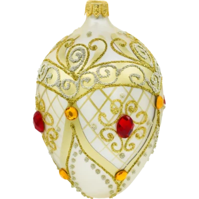 Ta bombka w stylu Fabergé będzie efektowną ozdobą każdego świątecznego drzewka, wniesie nutę luksusu i idealnie wpisze się w aranżacje glamour, barokowe oraz klasyczne. To także doskonały pomysł na ekskluzywny prezent bożonarodzeniowy dla koneserów piękna.
