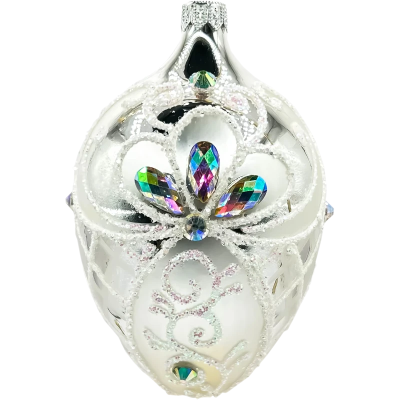 Ekskluzywne jajo Faberge z kamieniami: srebro i biel