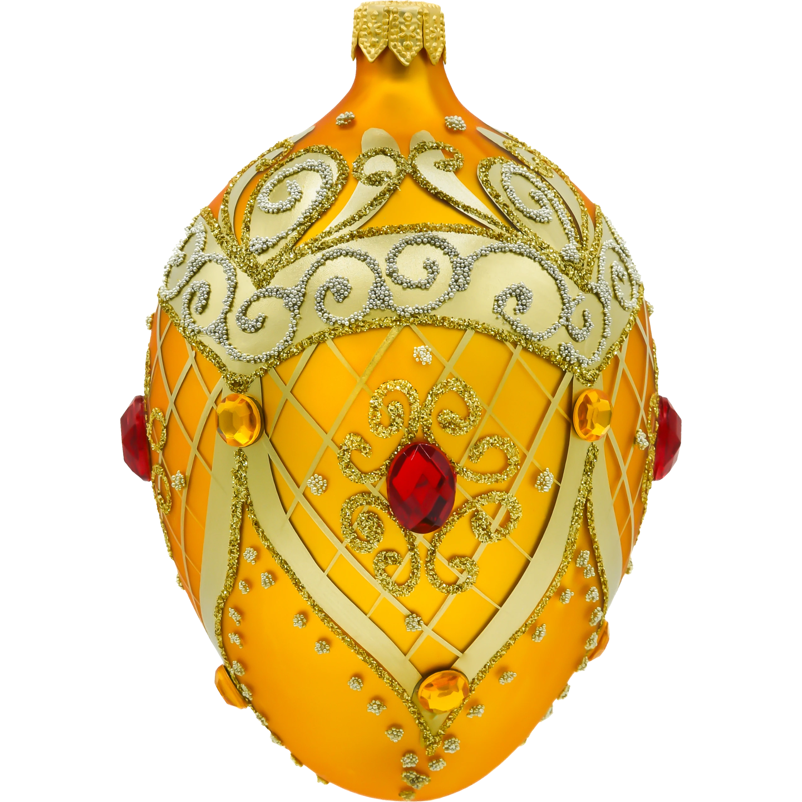 Ta bombka Faberge idealnie pasuje do dekoracji w stylu glamour, vintage, oraz klasycznym, wnosząc do wnętrza wyrafinowaną elegancję i ciepło.
