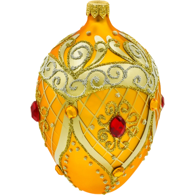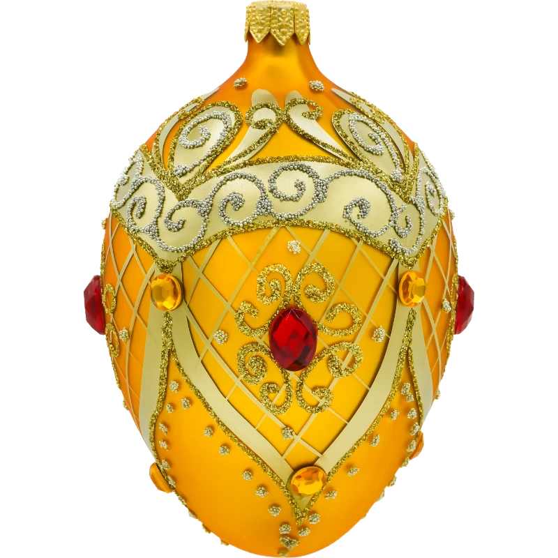 Dodaj do swojej świątecznej dekoracji nutę elegancji i luksusu z tą wyjątkową bombką w stylu Faberge. Ta ręcznie wykonana bombka w kształcie jaja zachwyca głębokim, bursztynowym odcieniem, który wspaniale współgra z bogatymi, złotymi zdobieniami i kryształowymi akcentami. Bombka ta stanie się centralnym punktem każdej świątecznej aranżacji, przyciągając wzrok swoim wyrafinowanym wyglądem.