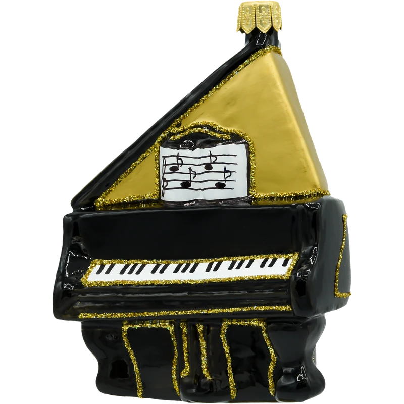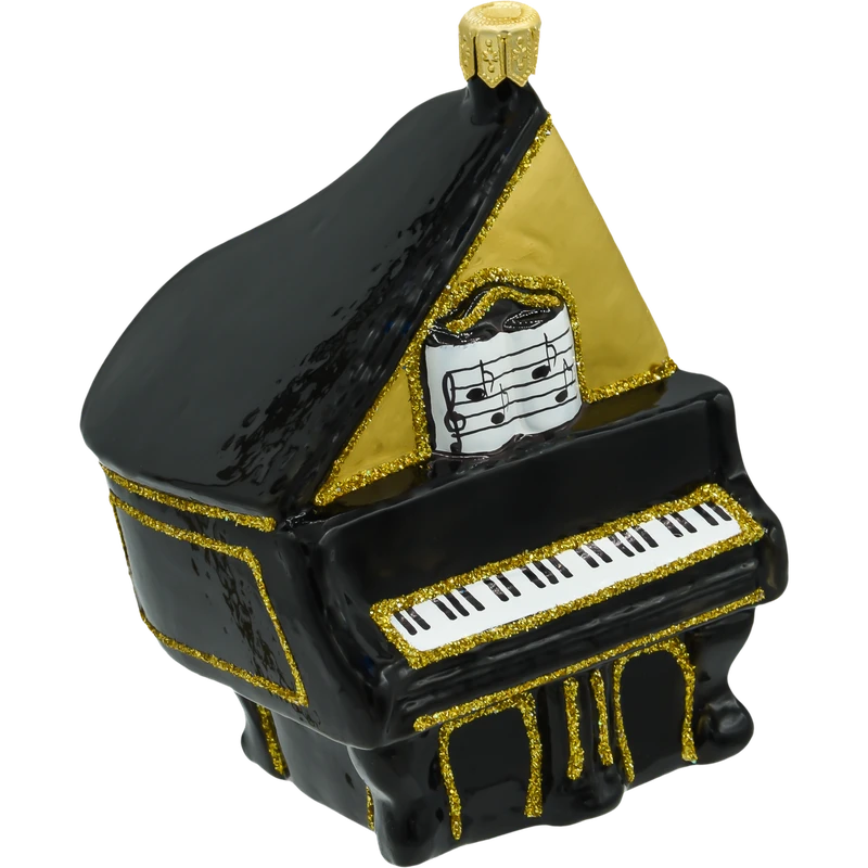 Ręcznie wykonana bombka w kształcie fortepianu, która zachwyca swoim precyzyjnym odwzorowaniem instrumentu, zdobionego w czarno-złote kolory, z detalami takimi jak klawiatura i nuty. Idealna dla miłośników muzyki, bombka „Fortepian” to doskonały akcent, który nada świątecznej aranżacji wyjątkowego, klasycznego charakteru.