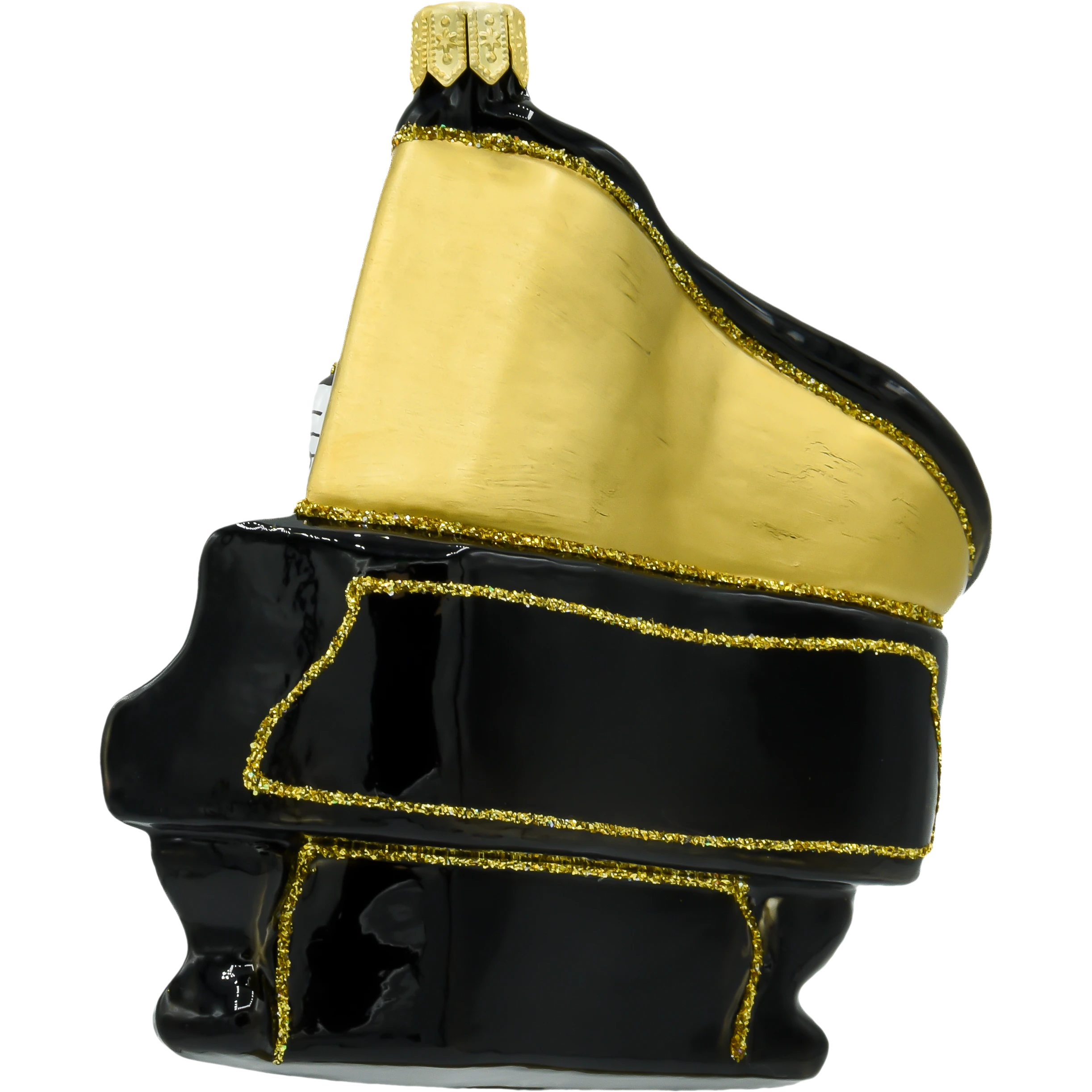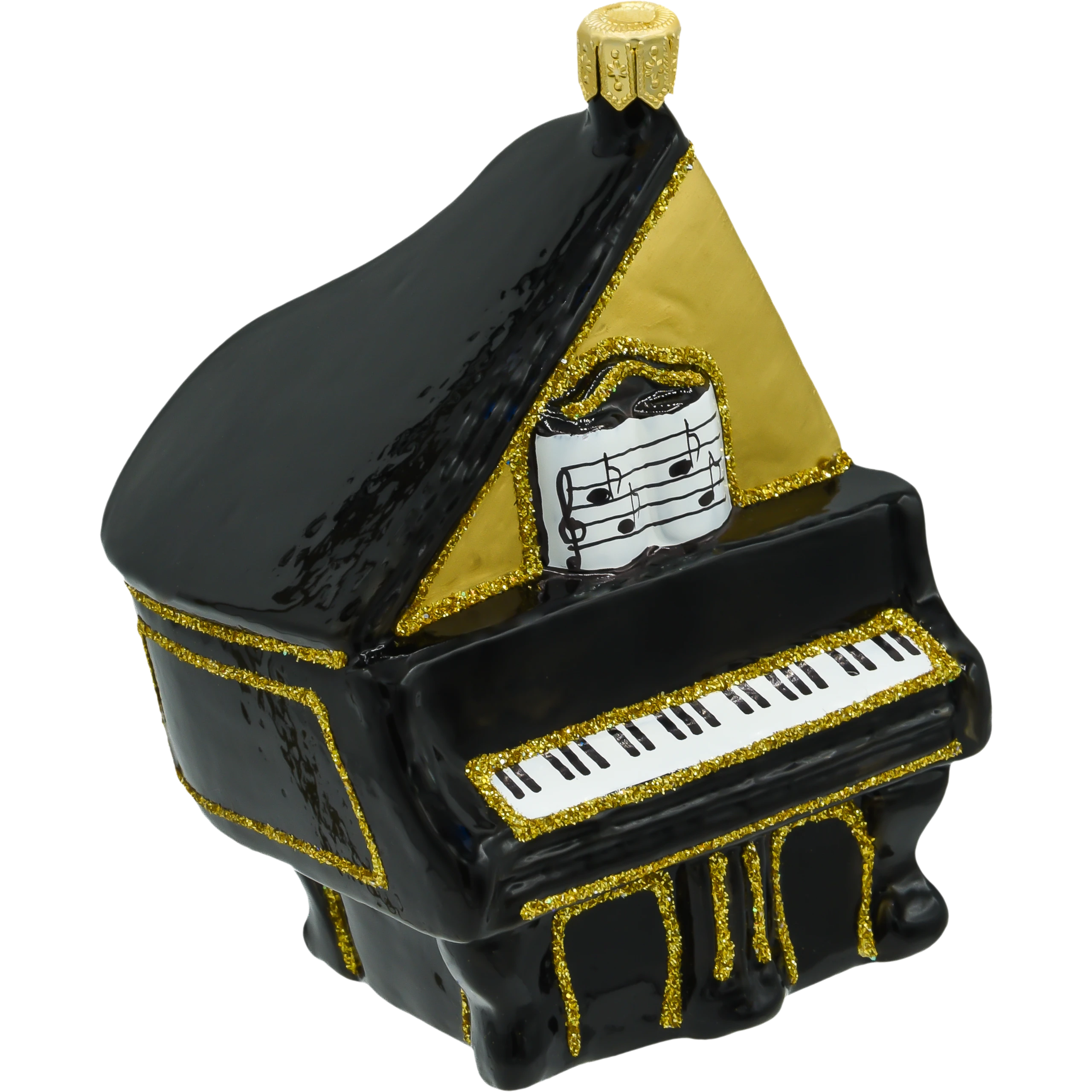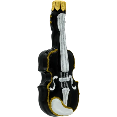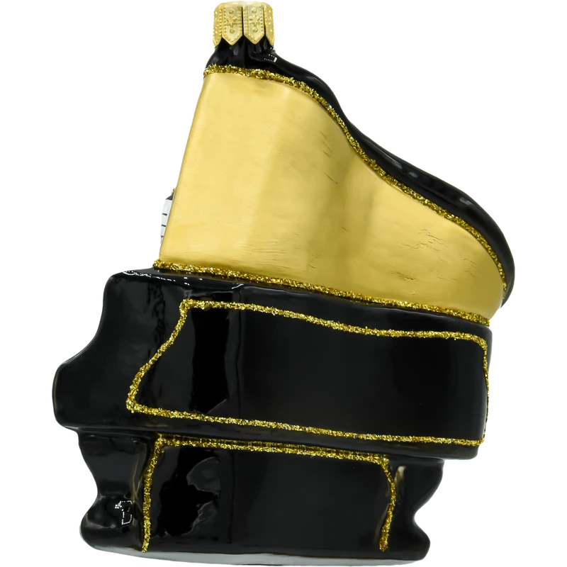 Bombka „Fortepian” została stworzona z dbałością o najmniejsze szczegóły, aby w pełni oddać piękno i majestatyczność tego wyjątkowego instrumentu. Ręcznie malowane czarno-złote wykończenie dodaje elegancji i blasku, a misternie odwzorowana klawiatura oraz realistyczne nuty na pulpicie sprawiają, że bombka wygląda niezwykle autentycznie. Jest to prawdziwe dzieło sztuki, które z powodzeniem może stać się centralnym elementem każdej świątecznej dekoracji.