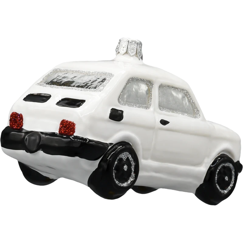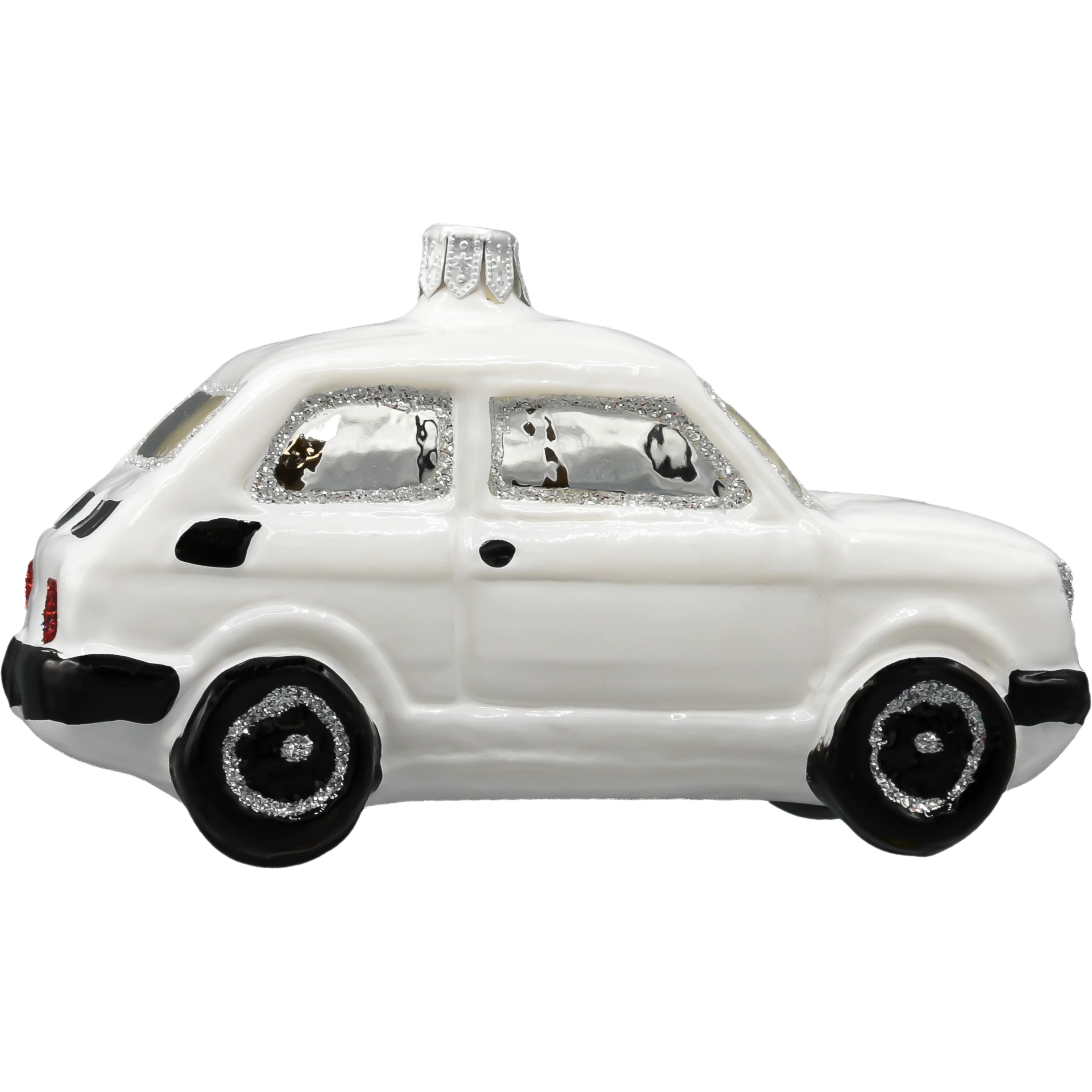 Bombka wykonana jest z najwyższej jakości szkła i ręcznie zdobiona przez polskich rzemieślników, co zapewnia jej unikalność oraz artystyczną wartość. Dzięki delikatnemu połyskowi oraz starannie wyprofilowanym elementom, takim jak srebrne reflektory, okna i opony, „Biały Maluch” staje się nie tylko piękną ozdobą świąteczną, ale także wyjątkowym prezentem, który przenosi nas do czasów dzieciństwa i przypomina o klasykach polskich dróg.