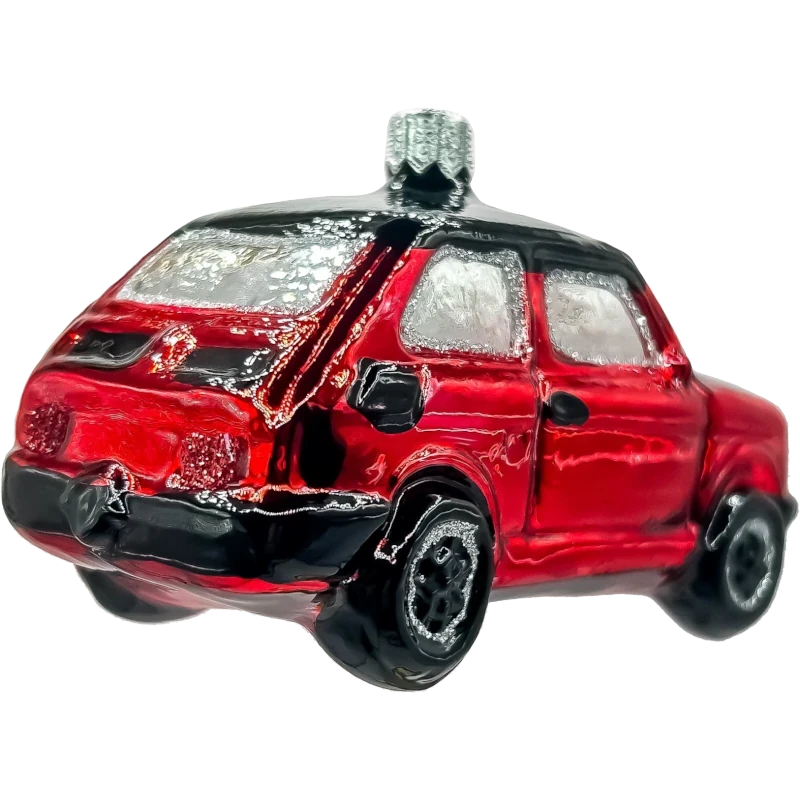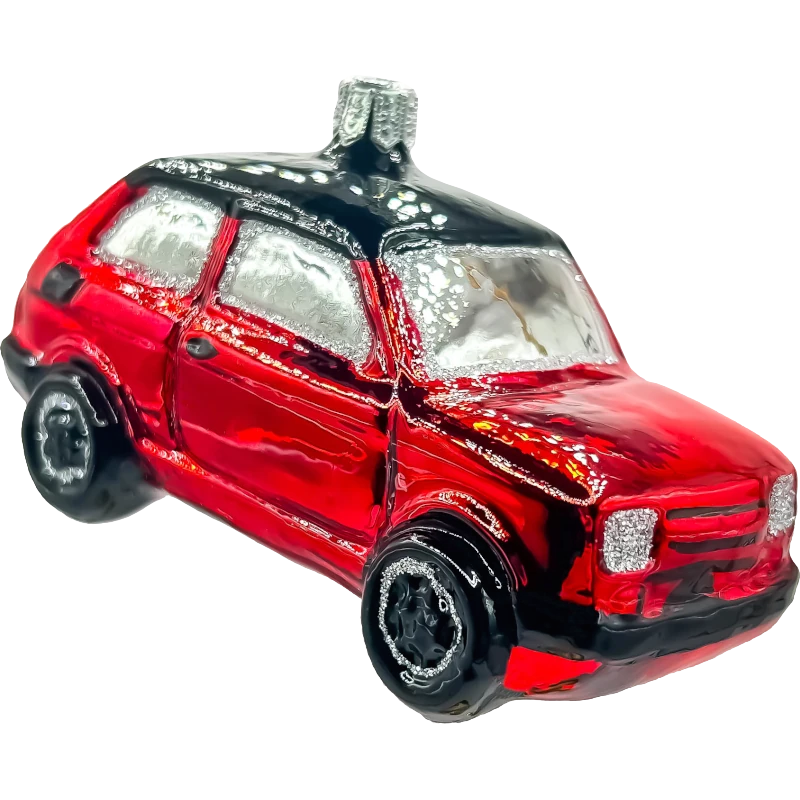 Bombka przedstawia Malucha w intensywnej czerwieni, z czarnym dachem oraz realistycznie oddanymi reflektorami i zderzakami, które nadają jej wyjątkowego charakteru. Każdy detal – od kształtu nadwozia po ręcznie malowane akcenty – został starannie odwzorowany, co sprawia, że bombka jest nie tylko piękną dekoracją, ale również doskonałym prezentem dla fanów klasycznych samochodów i polskiego dziedzictwa motoryzacyjnego.