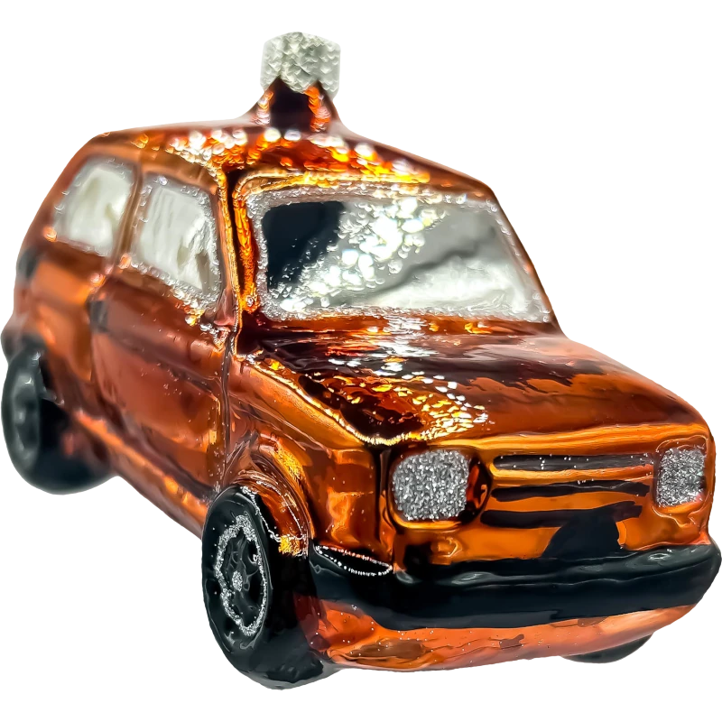 Dodaj na swoją choinkę odrobinę nostalgii i polskiego klimatu dzięki tej wyjątkowej szklanej bombce w kształcie Fiata 126p, znanego jako „Maluch”. Wyróżniająca się intensywnie pomarańczowym kolorem bombka doskonale odwzorowuje charakterystyczne detale tego kultowego auta, takie jak prostokątne reflektory, wyraźne linie nadwozia i klasyczny kształt.