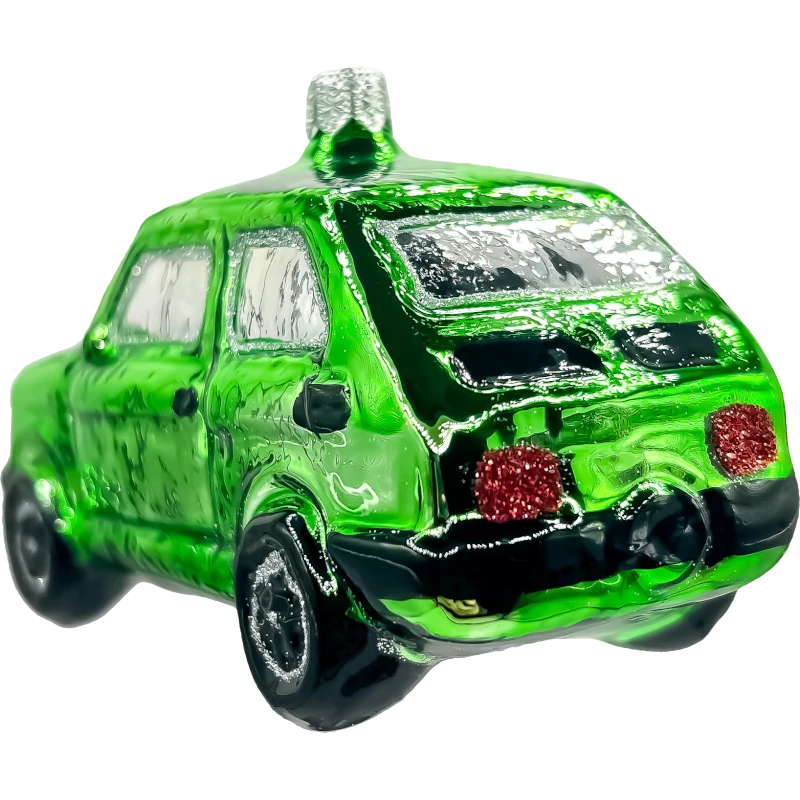 Motywy dekoracyjne: Kultowy Fiat 126p, znany jako „Maluch” – symbol polskiej historii motoryzacji, który doda wyjątkowego charakteru Twojej choince.
