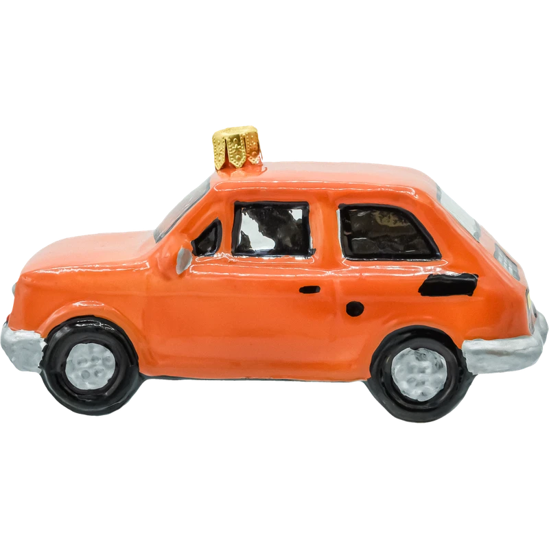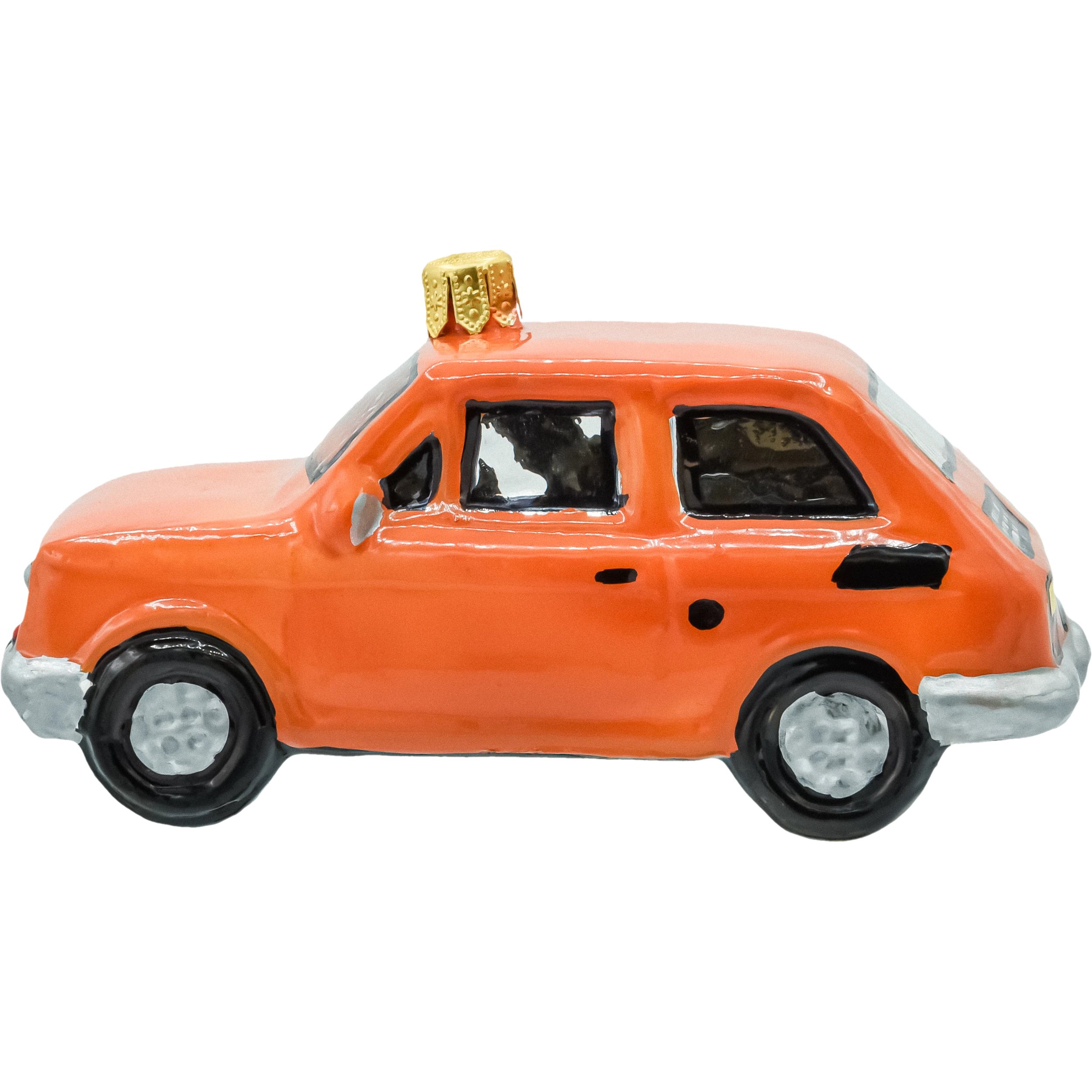 Przywołaj na choince klimat minionej epoki. Figuralna bombka „Maluch 126p” to ręcznie formowana i zdobiona ozdoba, która łączy sentyment do PRL-u z rzemiosłem polskich hut szkła. Soczysty, pomarańczowy lakier, srebrzone szyby i czarne „opony” z brokatowym połyskiem tworzą rozpoznawalną sylwetkę kultowego auta. Każda sztuka powstaje tradycyjnie – jest dmuchana ustnie, srebrzona od środka i malowana warstwa po warstwie, dlatego subtelnie różni się detalami. To właśnie znak autentycznej, ręcznej pracy.