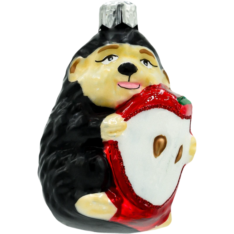 ✔ Ręcznie malowana bombka ze szkła w kształcie jeża z jabłkiem