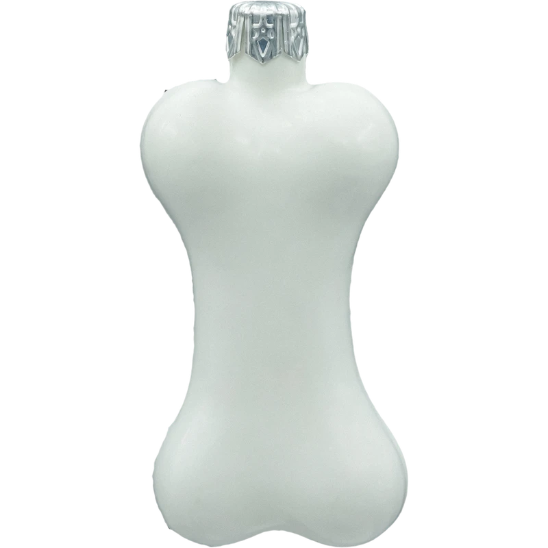 Bombka szklana „Kość – klasyczna biel” to minimalistyczna, figuralna ozdoba choinkowa, która od razu kojarzy się z ukochanym pupilem. Kształt eleganckiej kości psa odlany został z dmuchanego szkła, a następnie pokryty satynowo-białą powłoką. Prostota formy sprawia, że dekor wygląda nowocześnie i świetnie łączy się zarówno z tradycyjnymi bombkami, jak i z fantazyjnymi figurkami. Na górze znajduje się metalowa, srebrna koronka z zawieszką, dzięki której powiesisz ozdobę na choince w kilka sekund. Lekka konstrukcja nie obciąża gałązek i bezpiecznie trzyma się na drzewku.