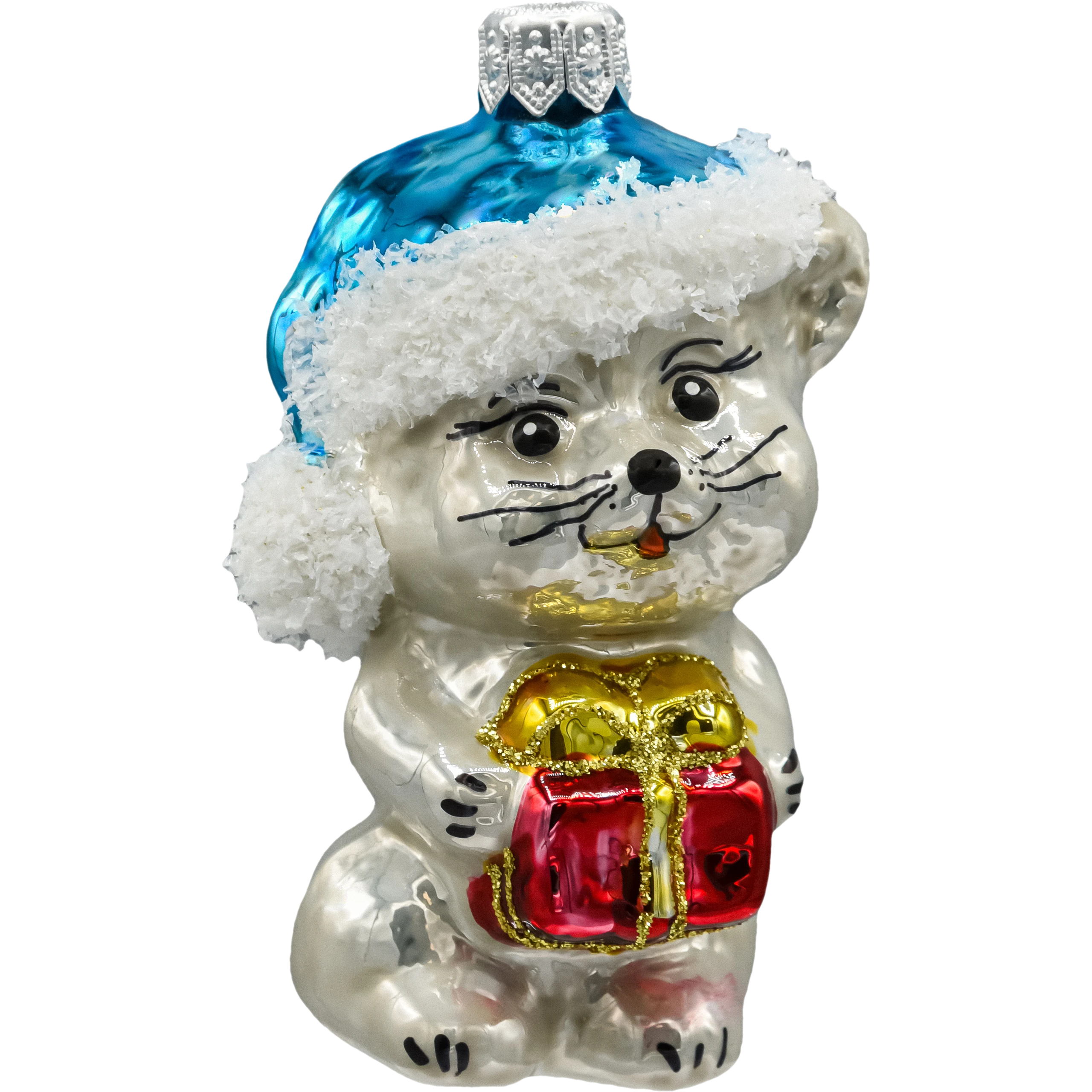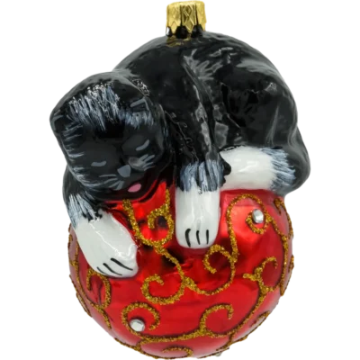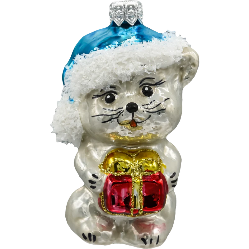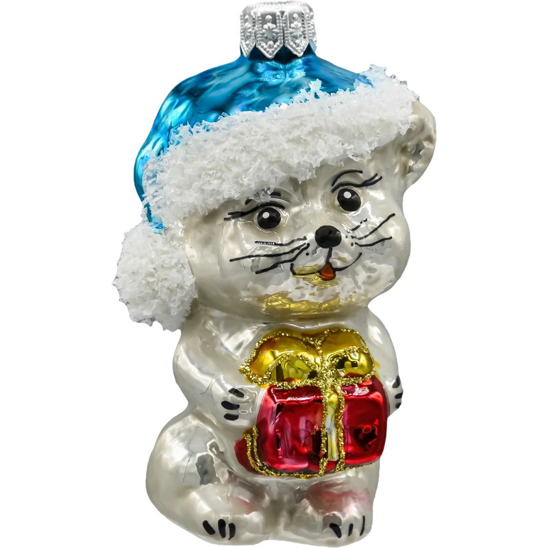 • Rodzaj: bombka szklana w kształcie uroczego kotka z prezentem