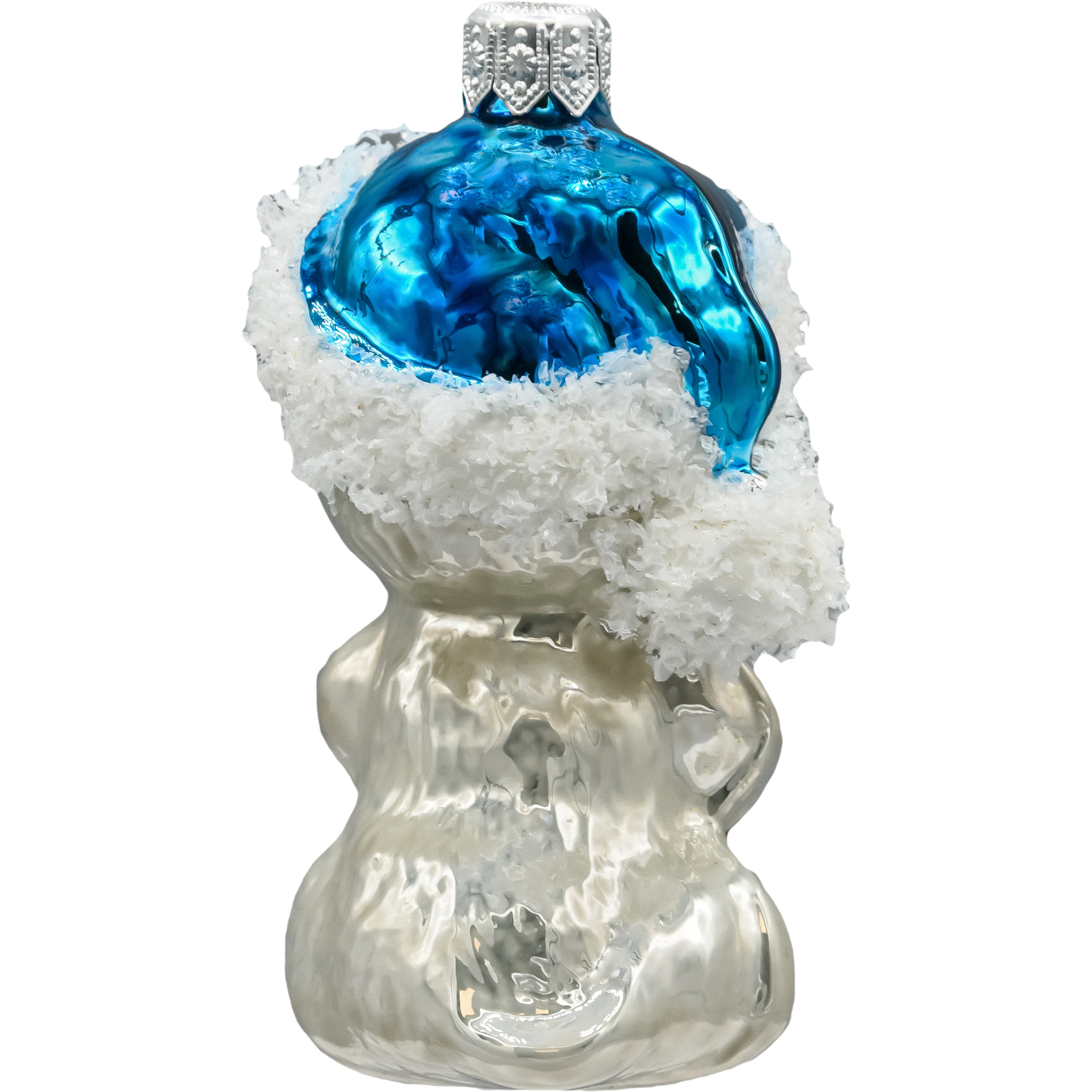 Bombka została wykonana z najwyższej jakości szkła dmuchanego i ręcznie zdobiona z dbałością o każdy detal – od śnieżnobiałej brody czapki, przez połyskujące oczy, po subtelne akcenty brokatu na prezencie. Dzięki temu każda sztuka ma niepowtarzalny charakter i przyciąga spojrzenia swoim blaskiem i wyrazem.