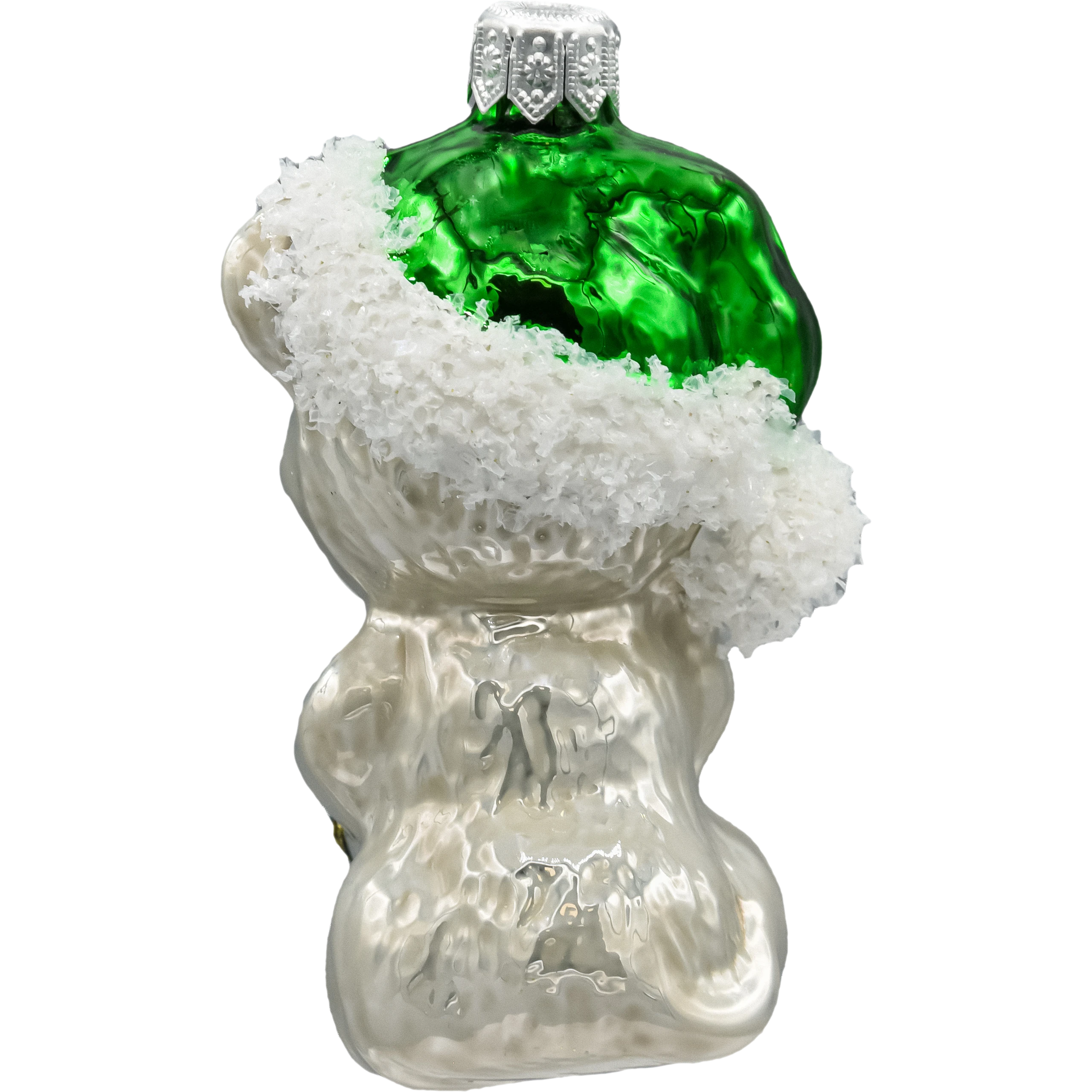 Bombka została wykonana z wysokiej jakości dmuchanego szkła i pokryta ręcznie naniesionymi detalami – od starannie namalowanych oczek i pyszczka, po realistyczne cieniowanie futerka. Dodatek sztucznego śniegu na czapce dodaje kompozycji zimowego uroku. Dzięki niewielkim rozmiarom i lekkiej formie bombka idealnie sprawdzi się zarówno na dużych choinkach, jak i w dekoracyjnych stroikach.