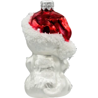 Ten uroczy kotek to ręcznie malowana szklana bombka choinkowa w rozmiarze ok. 10 cm. Błyszcząca, perłowa biel futerka, czerwone serduszko w łapkach, wyraziste niebieskie oczy, różowe uszka i limonkowa kokardka/obróżka z brokatem tworzą ciepłą, świąteczną kompozycję, która doskonale odbija światło lampek. Każdy egzemplarz powstaje z dbałością o detal – od rysunku pyszczka, przez kontury wąsów, aż po delikatny połysk szkła. To idealna ozdoba choinkowa dla miłośników kotów oraz świetny pomysł na prezent „od serca”.