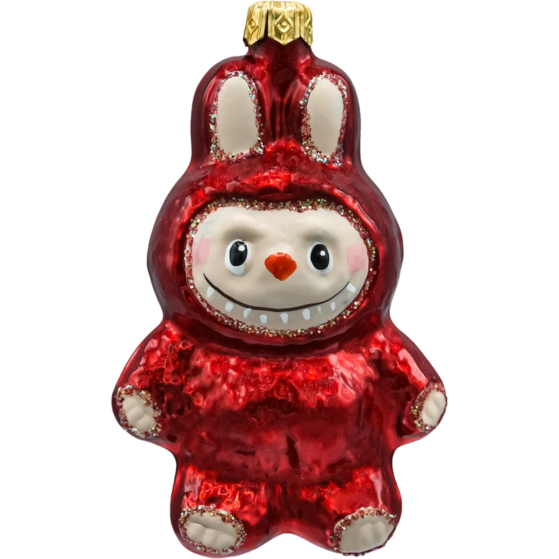 Bombka szklana inspirowana Labubu – czerwony króliczek