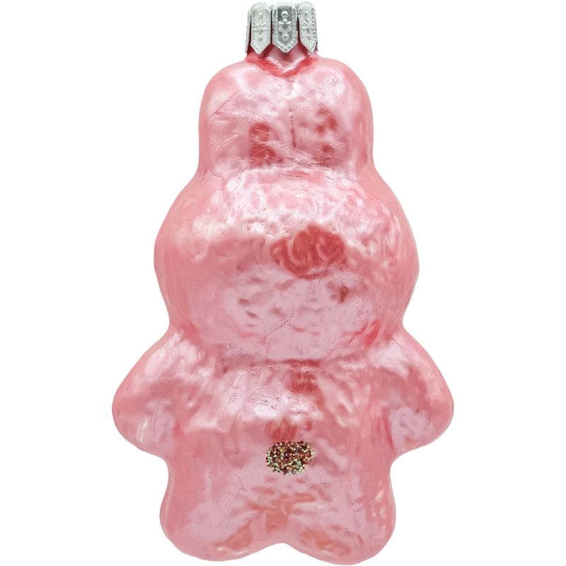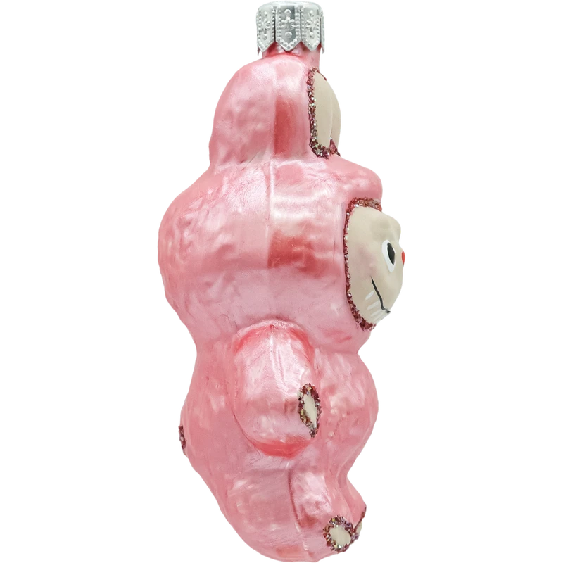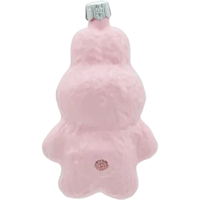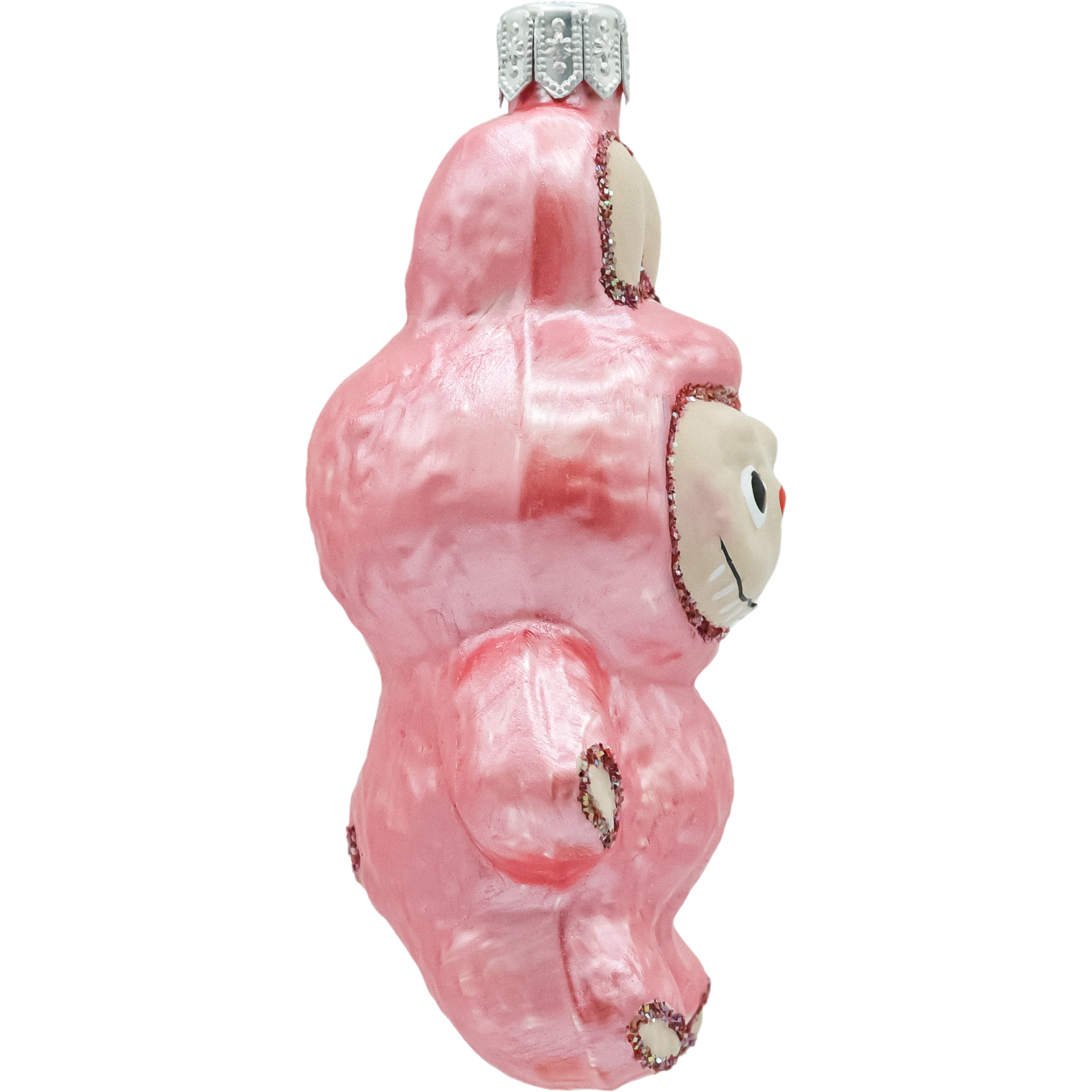 Wykonana ręcznie, dmuchana ze szkła i malowana pędzlem ozdoba w stylu popularnych figurek „labubu”. Urocza postać w różowym, połyskującym kombinezonie z króliczymi uszami, z kreskówkową buźką, brokatowymi konturami i delikatnym rumieńcem tworzy efekt „wow” na choince. To unikat – każda sztuka powstaje osobno, dlatego drobne różnice są naturalną cechą rękodzieła.