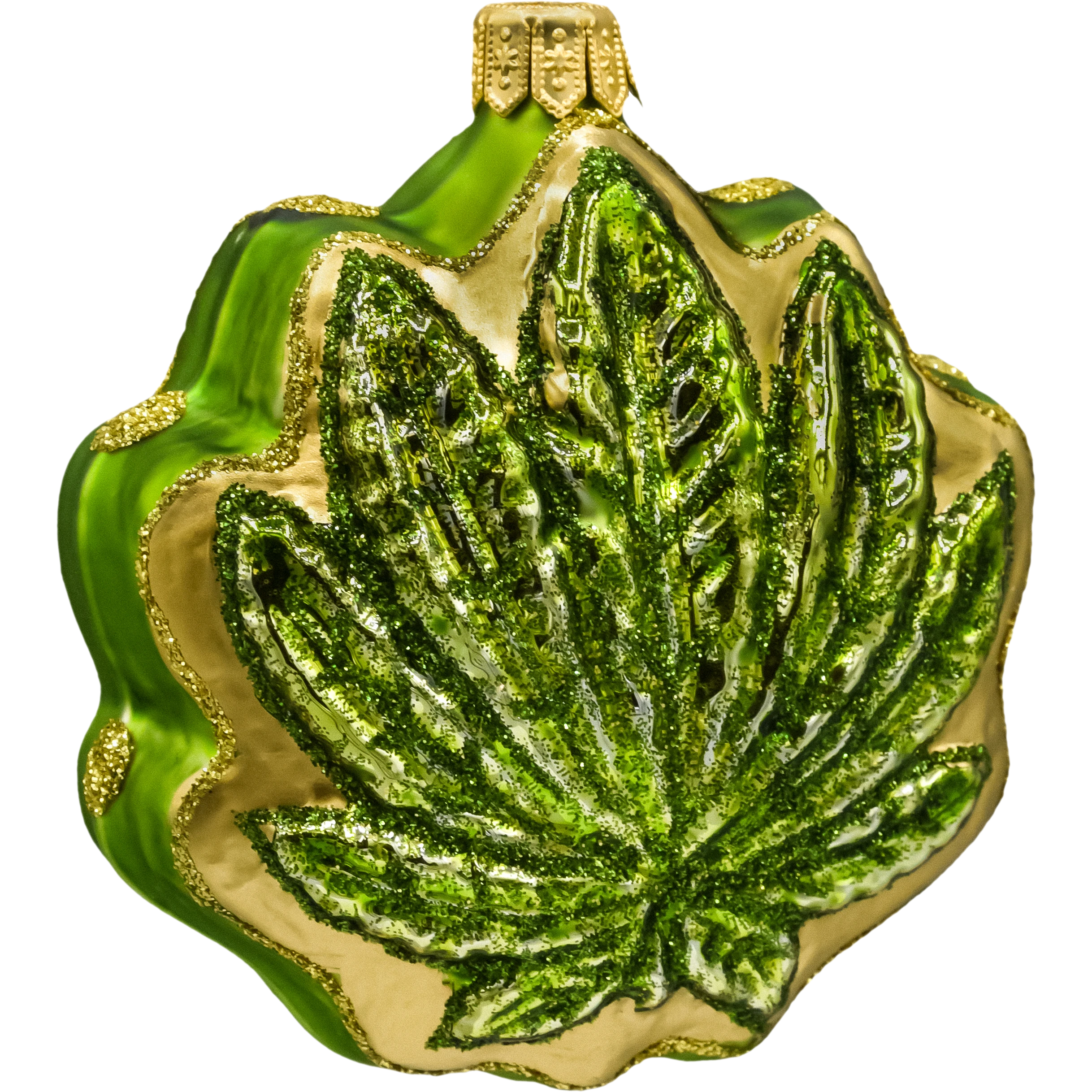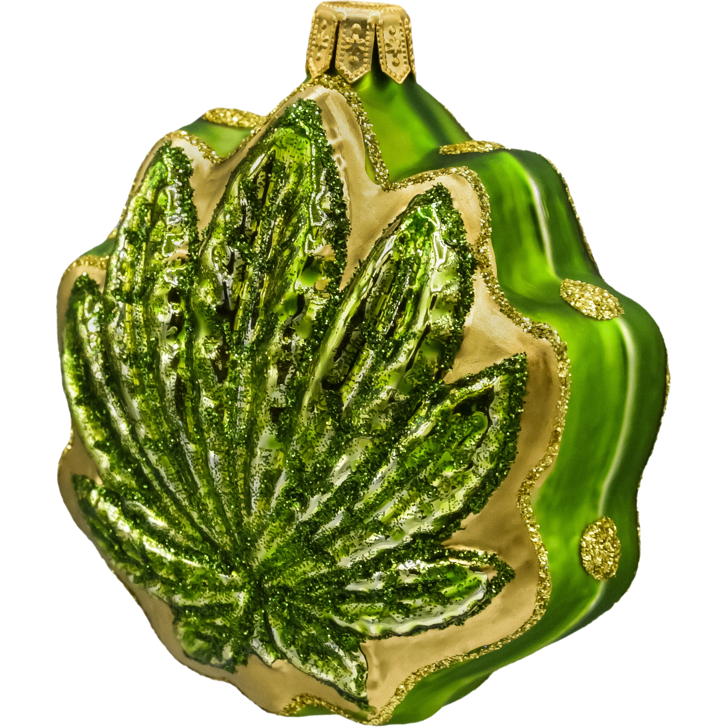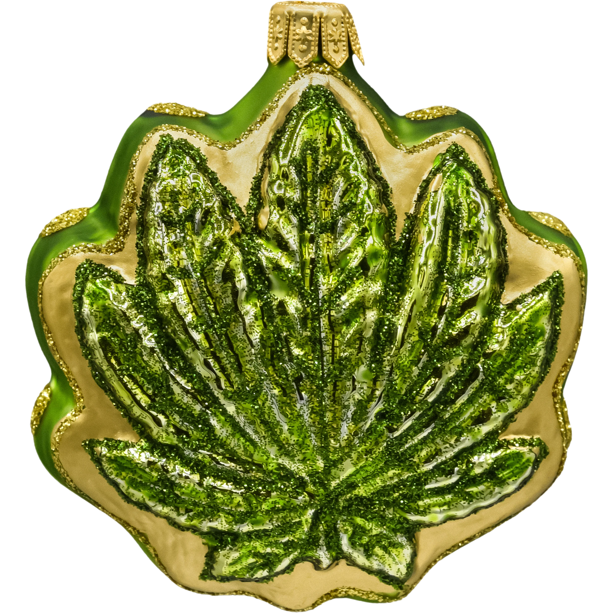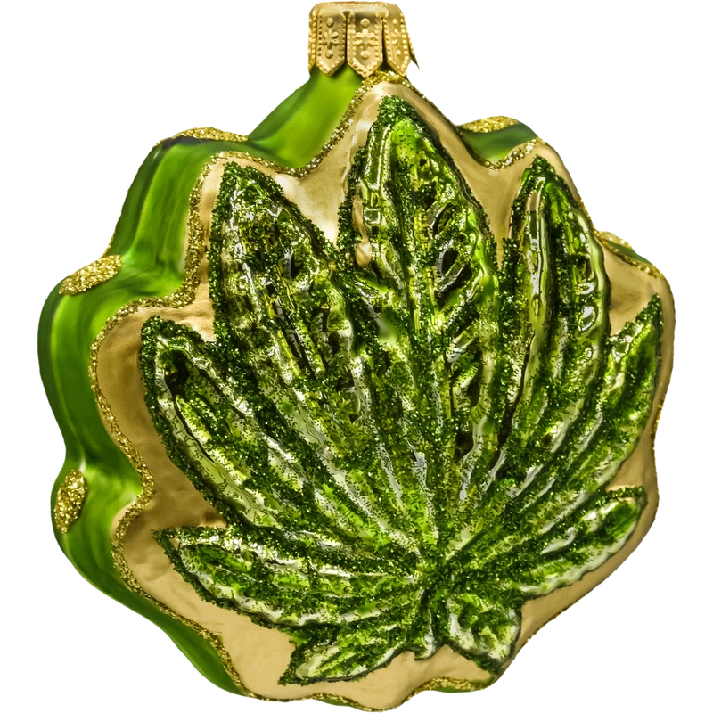 Zielony liść konopi z brokatem: złoty