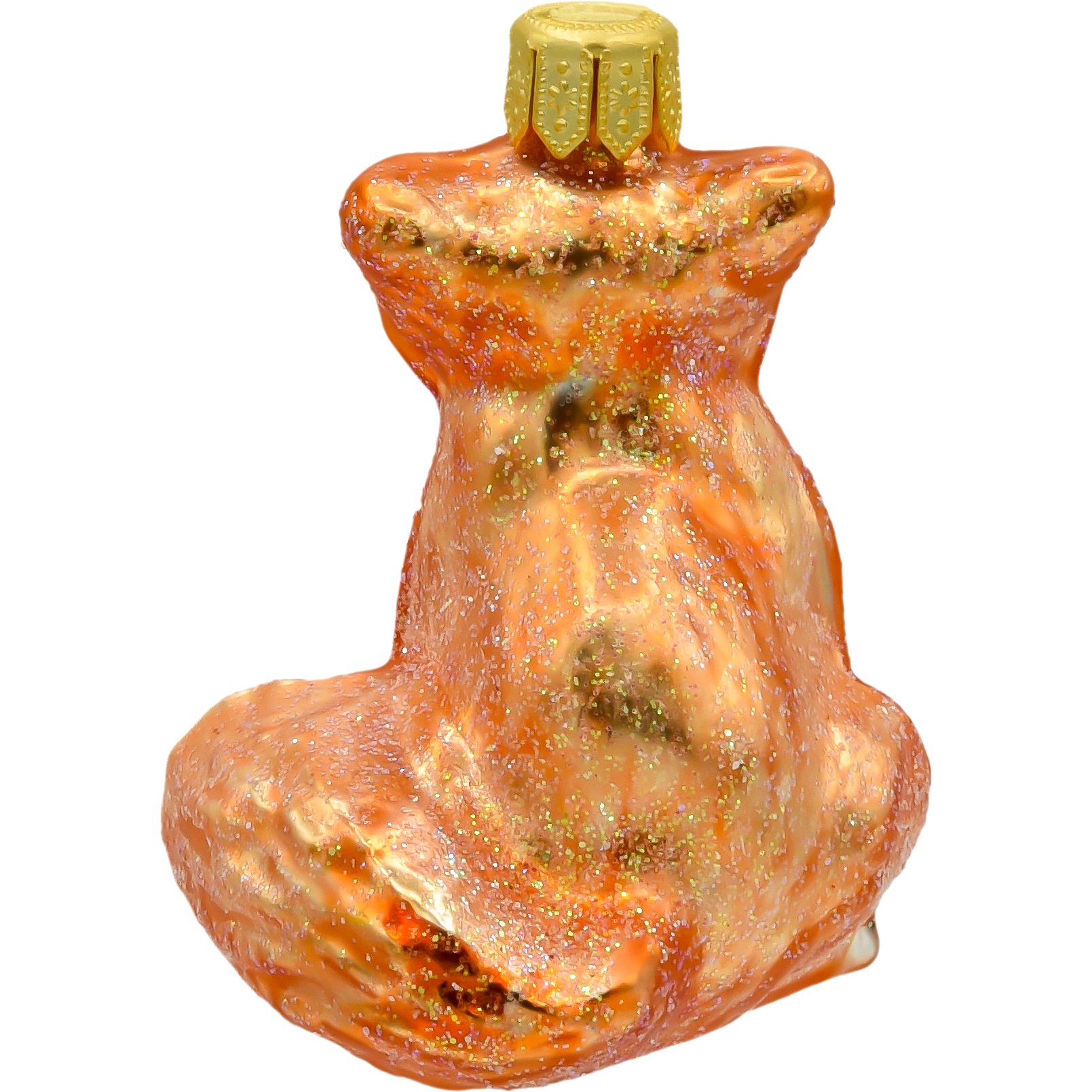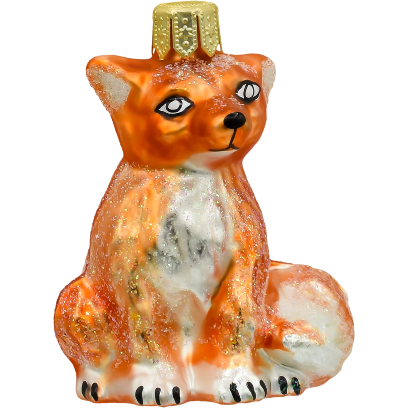 Dodaj odrobinę bajkowego uroku do swojej choinki dzięki tej wyjątkowej bombce w kształcie uroczego liska. Ta ręcznie wykonana i starannie malowana ozdoba świąteczna przedstawia siedzącego lisa o intensywnie rudym futerku z białymi i czarnymi akcentami, ozdobionego subtelnym brokatem, który pięknie odbija światło choinkowych lampek. Bombka została wykonana ze szkła i zachwyca dbałością o każdy detal – od wyrazistych, czarnych oczek po puszysty ogon zawinięty wokół ciała.