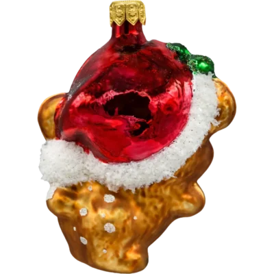 Małpka w świątecznej czapce i czerwonym stroju to symbol beztroskiej radości i świątecznego ducha. Złociste banany w jej rękach przyciągają uwagę i nadają bombce oryginalności. To idealna ozdoba dla tych, którzy chcą dodać swoim dekoracjom odrobinę humoru i luzu, tworząc atmosferę pełną ciepła i zabawy.