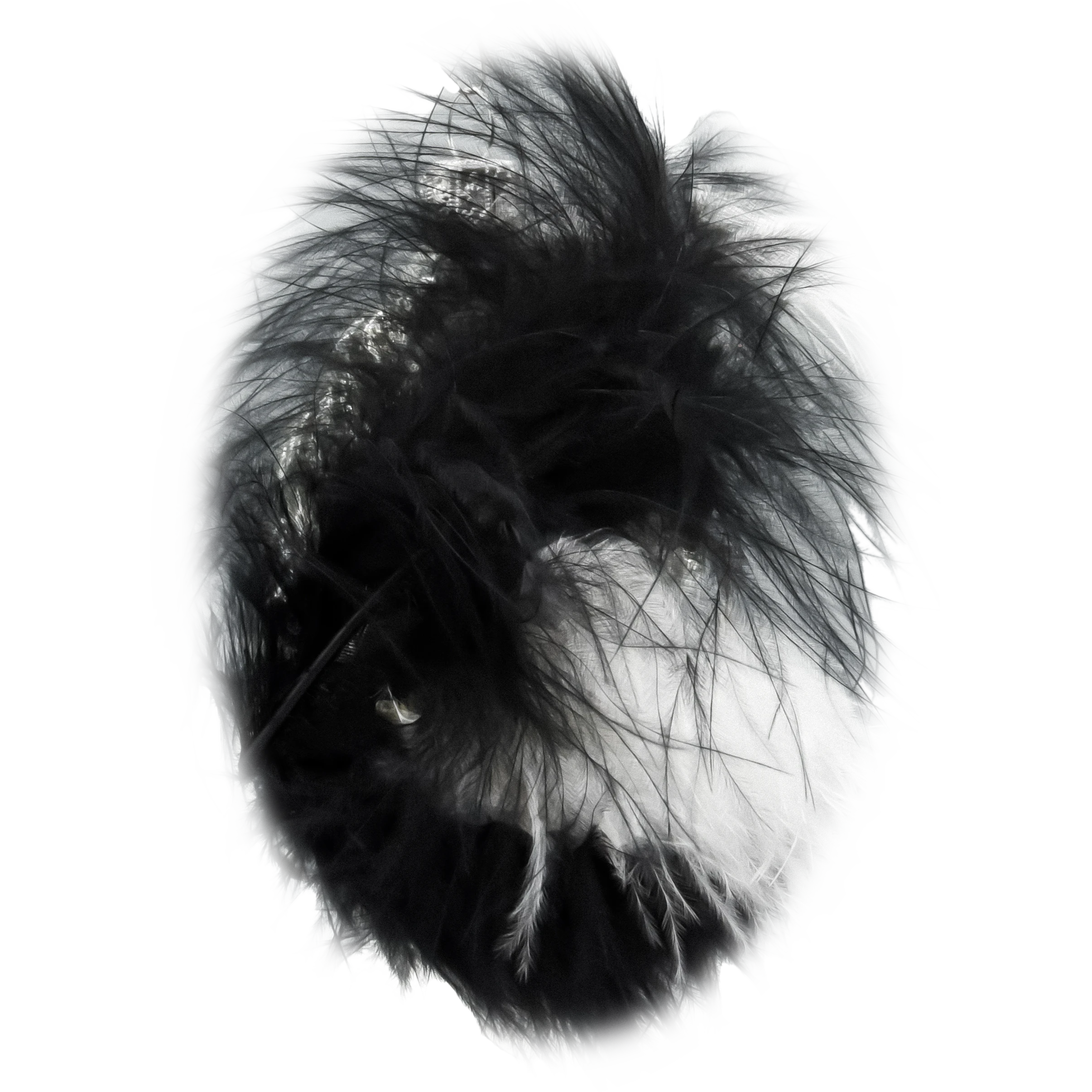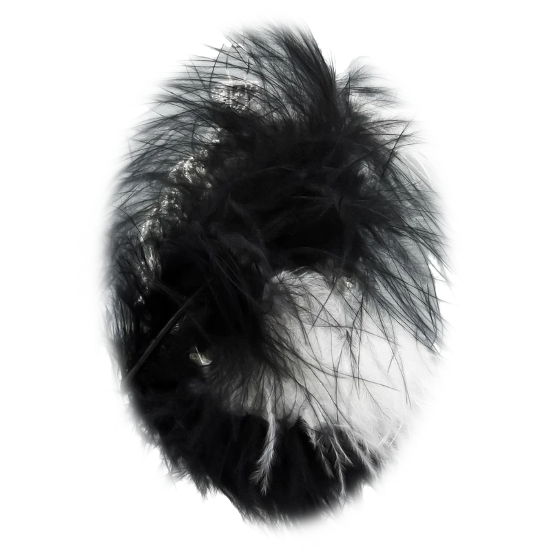Ekskluzywna szklana bombka choinkowa w formie maski karnawałowej z czarno-białymi piórami i ręcznym zdobieniem. Idealna do eleganckiej aranżacji świątecznej. Oryginalna ozdoba choinkowa w stylu weneckim.