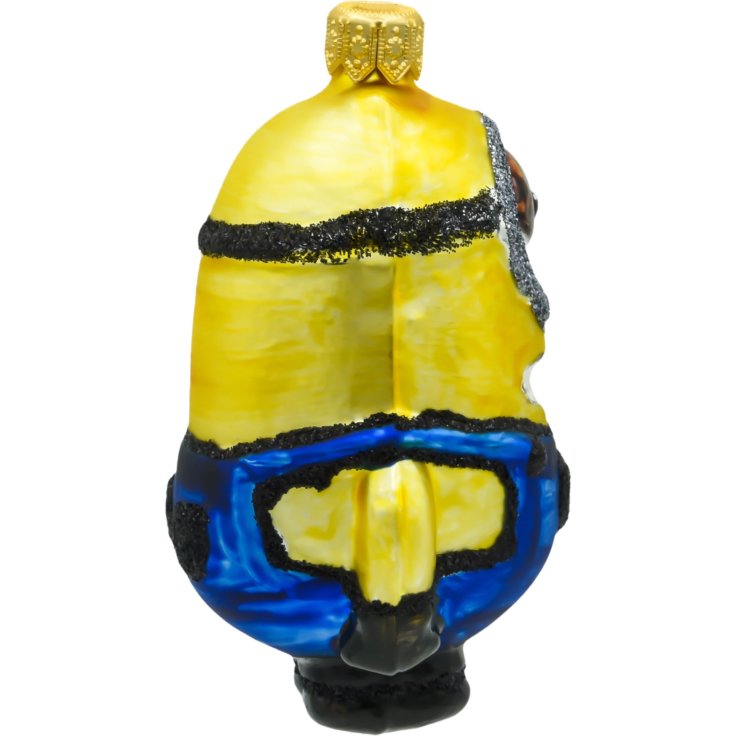 Śmieszna bombka choinkowa inspirowana żółtym stworkiem z animacji. Ręcznie malowana dekoracja z brokatem – idealna dla dzieci i fanów humorystycznych ozdób świątecznych.