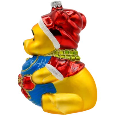 Ręcznie malowana bombka choinkowa w kształcie uroczego misia z bębnem – idealna dekoracja świąteczna dla dzieci i miłośników klasycznych ozdób. Szklana bombka misio z brokatowym wykończeniem i żywymi kolorami ożywi każdą choinkę.