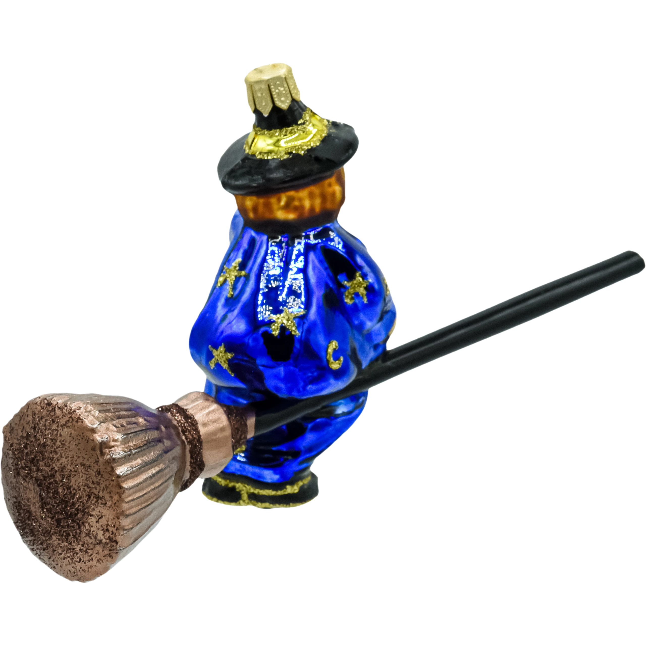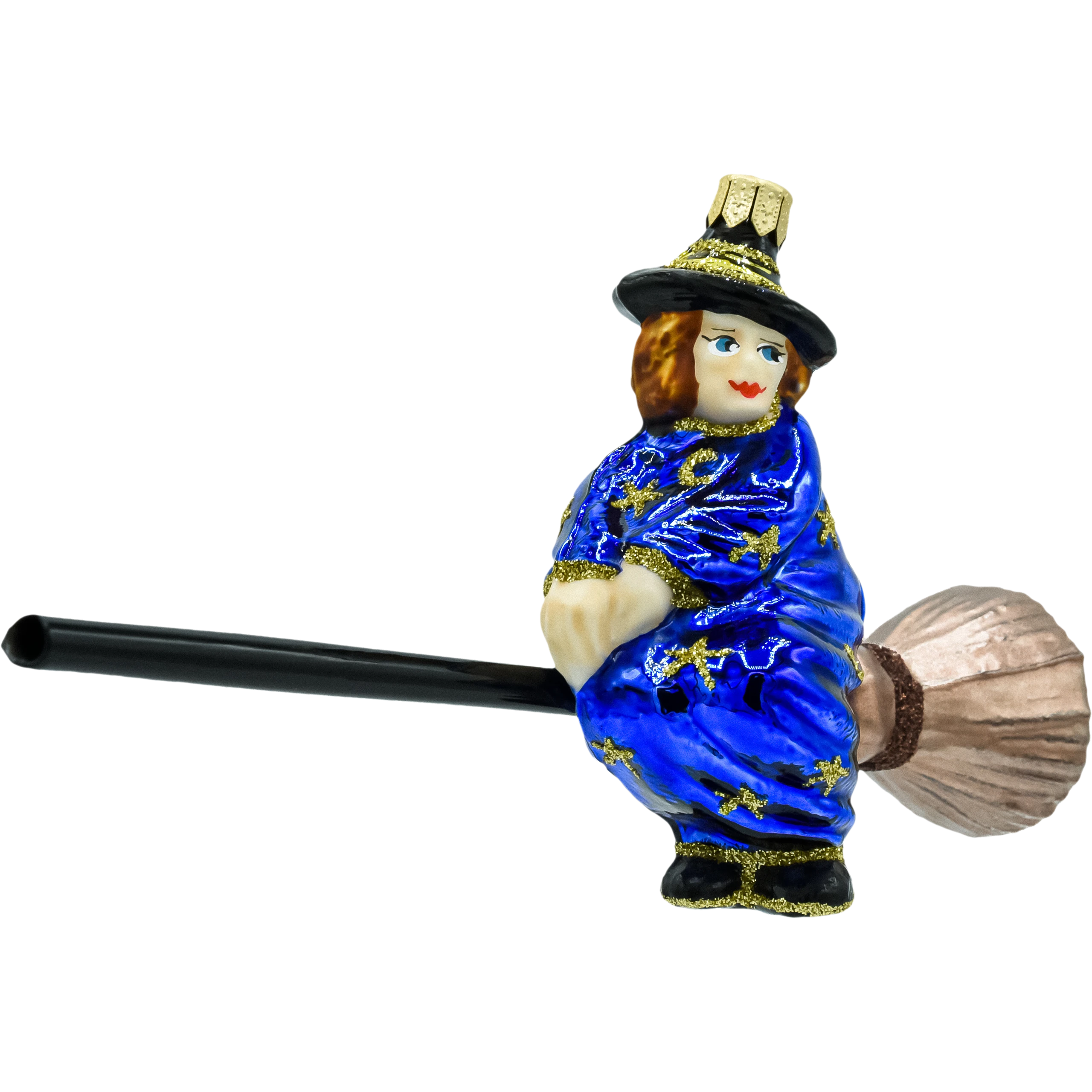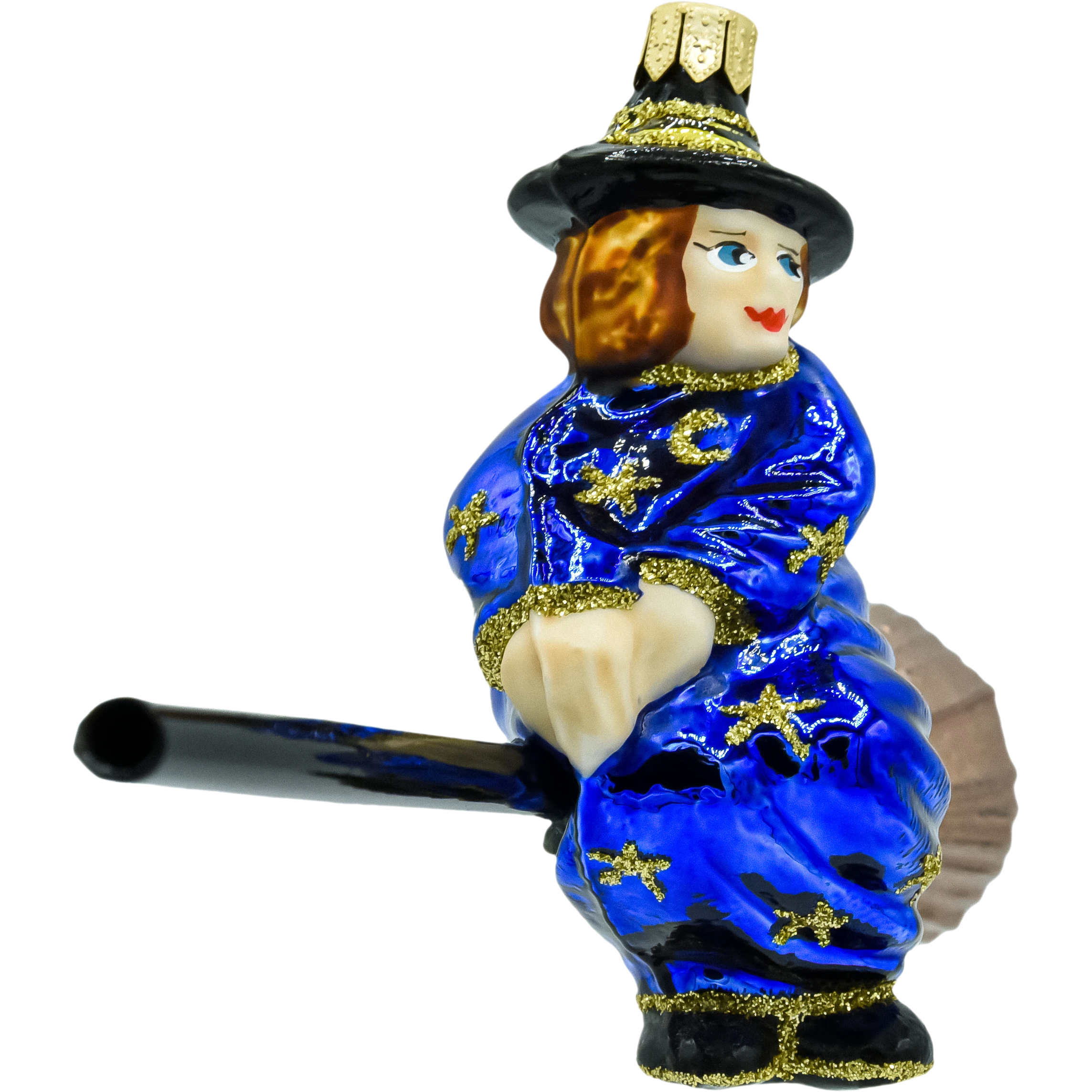 Dodaj odrobinę magii do swojego świątecznego wystroju z bombką „Niebieska Czarownica na Miotle”. Ręczne zdobienia, złote gwiazdy i intensywny niebieski kolor uczynią Twoją choinkę wyjątkową.