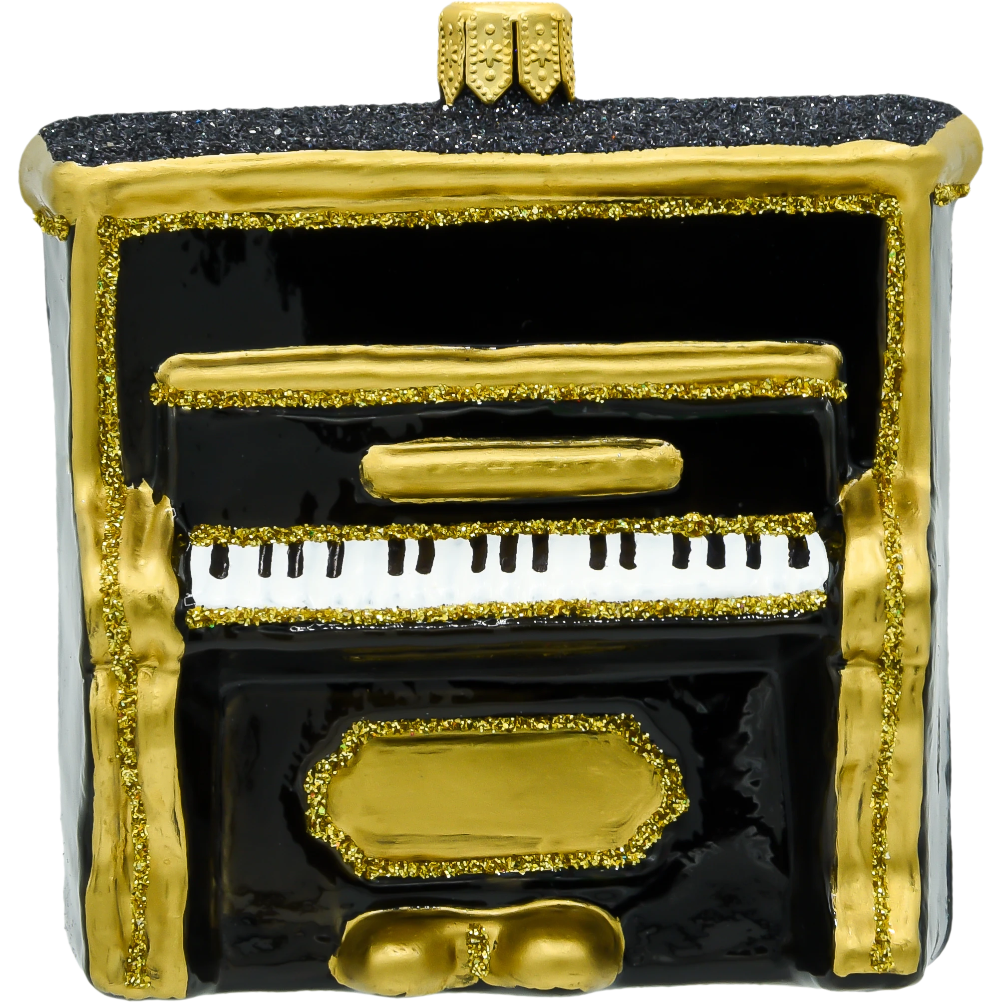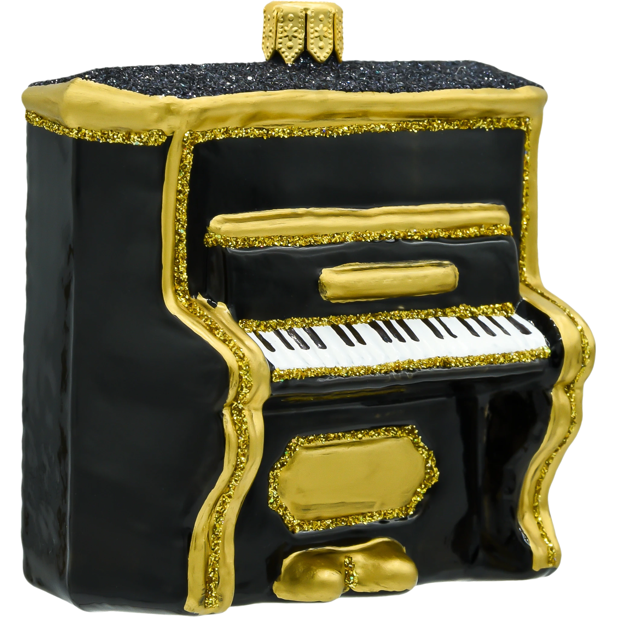 Klasyczny kształt pianina wiernie oddaje wygląd tego instrumentu, nadając bombce realistyczny wygląd.