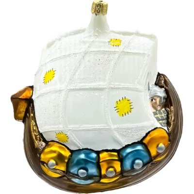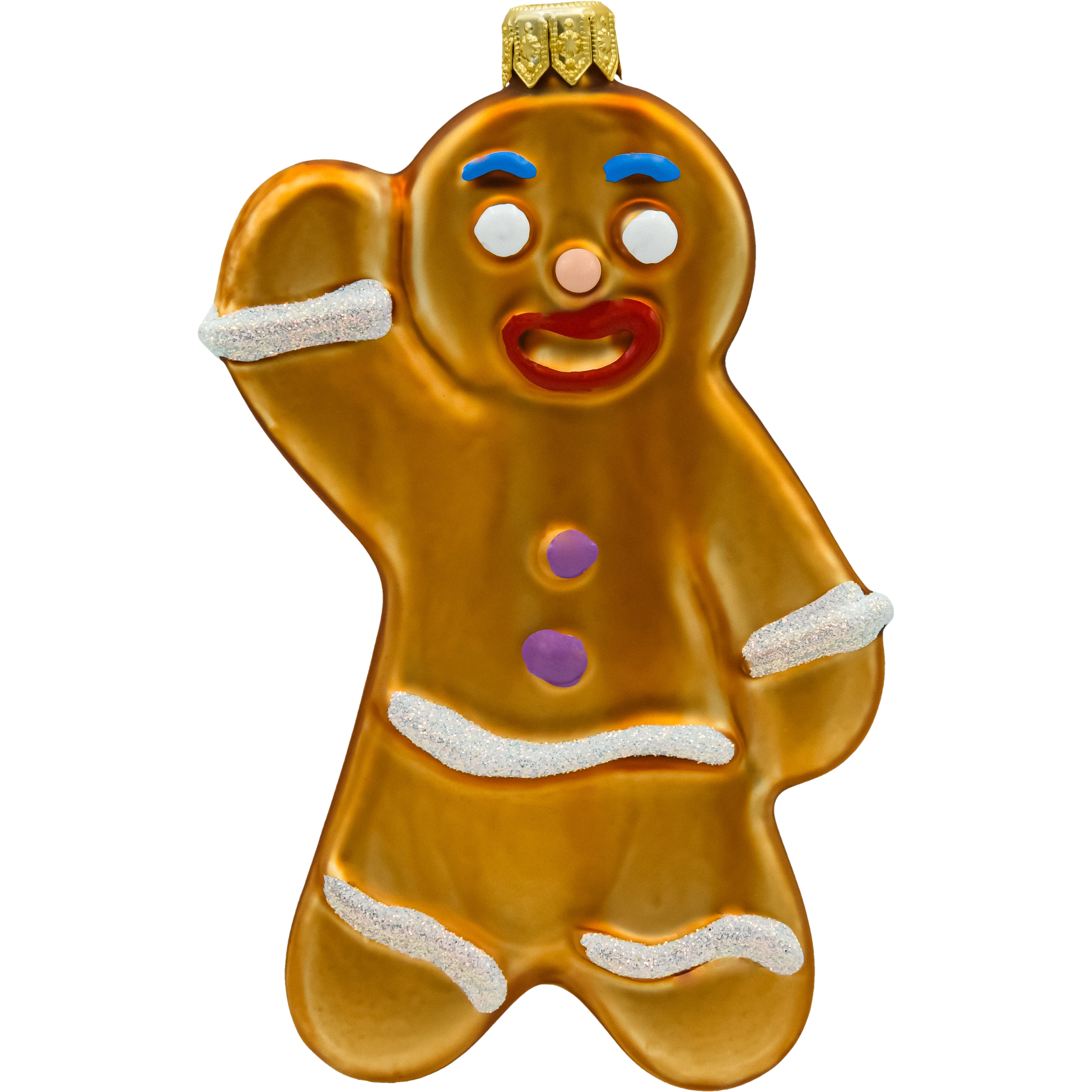 Piernikowy ludzik ma uśmiechniętą twarz, ozdobioną kolorowymi elementami, takimi jak błękitne brwi, czerwone usta i białe oczy, co nadaje mu sympatyczny i wesoły wyraz. Jego ciało jest ozdobione srebrnymi akcentami, imitującymi lukier, oraz dwoma fioletowymi guziczkami. Całość dopełnia połyskujące wykończenie, które sprawia, że ozdoba pięknie odbija światło choinkowych lampek. Wykonana z wysokiej jakości szkła, ozdoba jest trwała i elegancka.