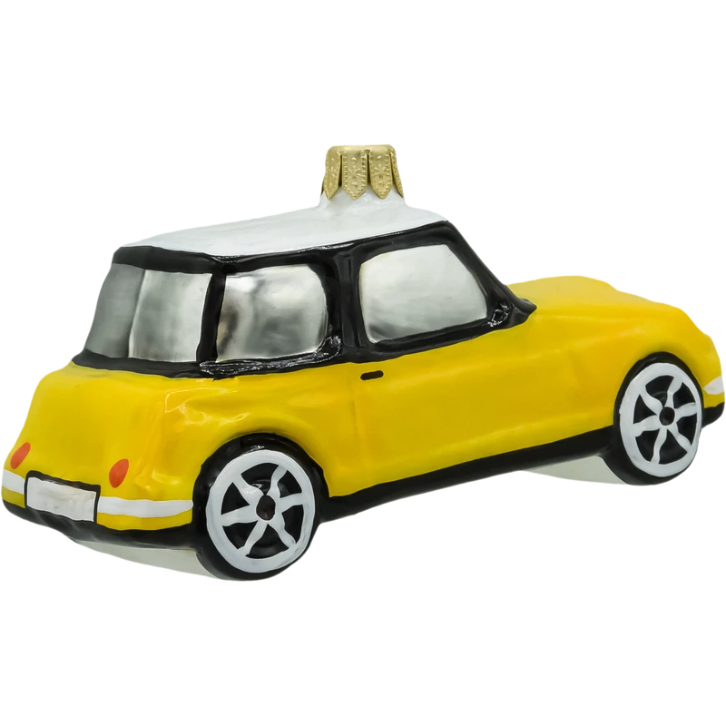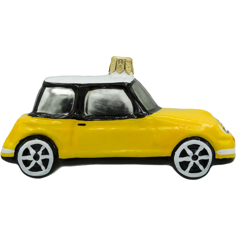 Wprowadź do swojej świątecznej dekoracji odrobinę miejskiego uroku dzięki tej wyjątkowej bombce w kształcie żółtego Mini Coopera. Ręcznie wykonana z dmuchanego szkła i precyzyjnie malowana, bombka zachwyca soczystym żółtym lakierem, kontrastującym czarnym dachem oraz dopracowanymi detalami, takimi jak reflektory, szyby i stylizowane koła.