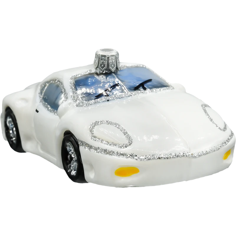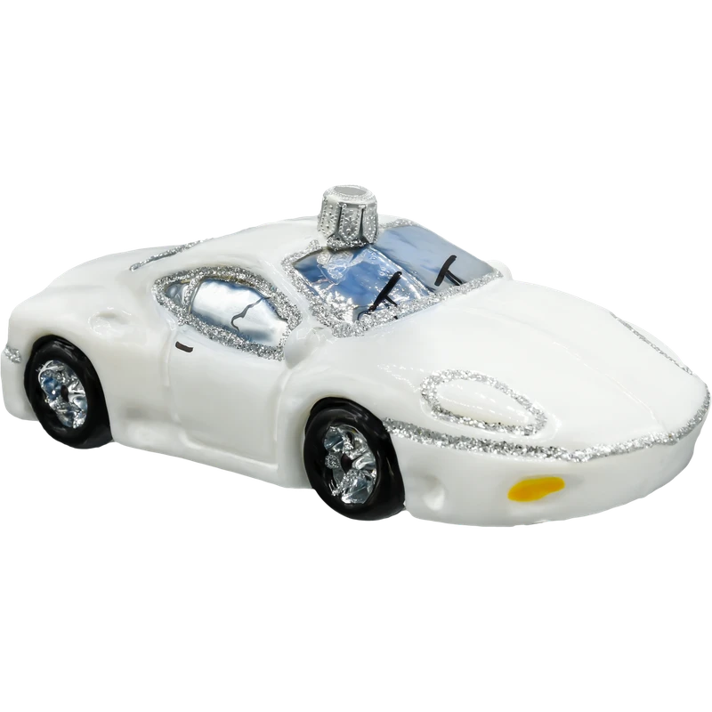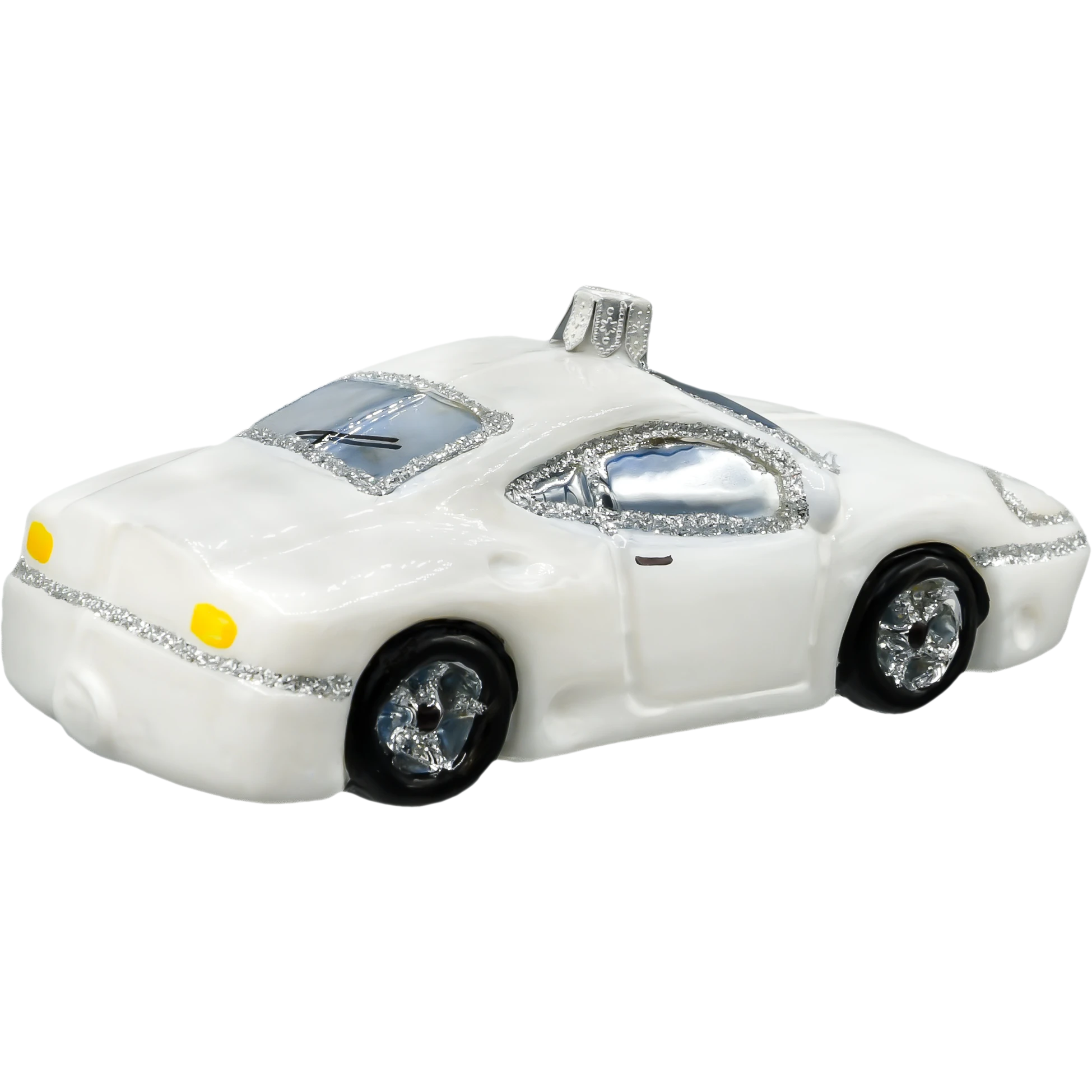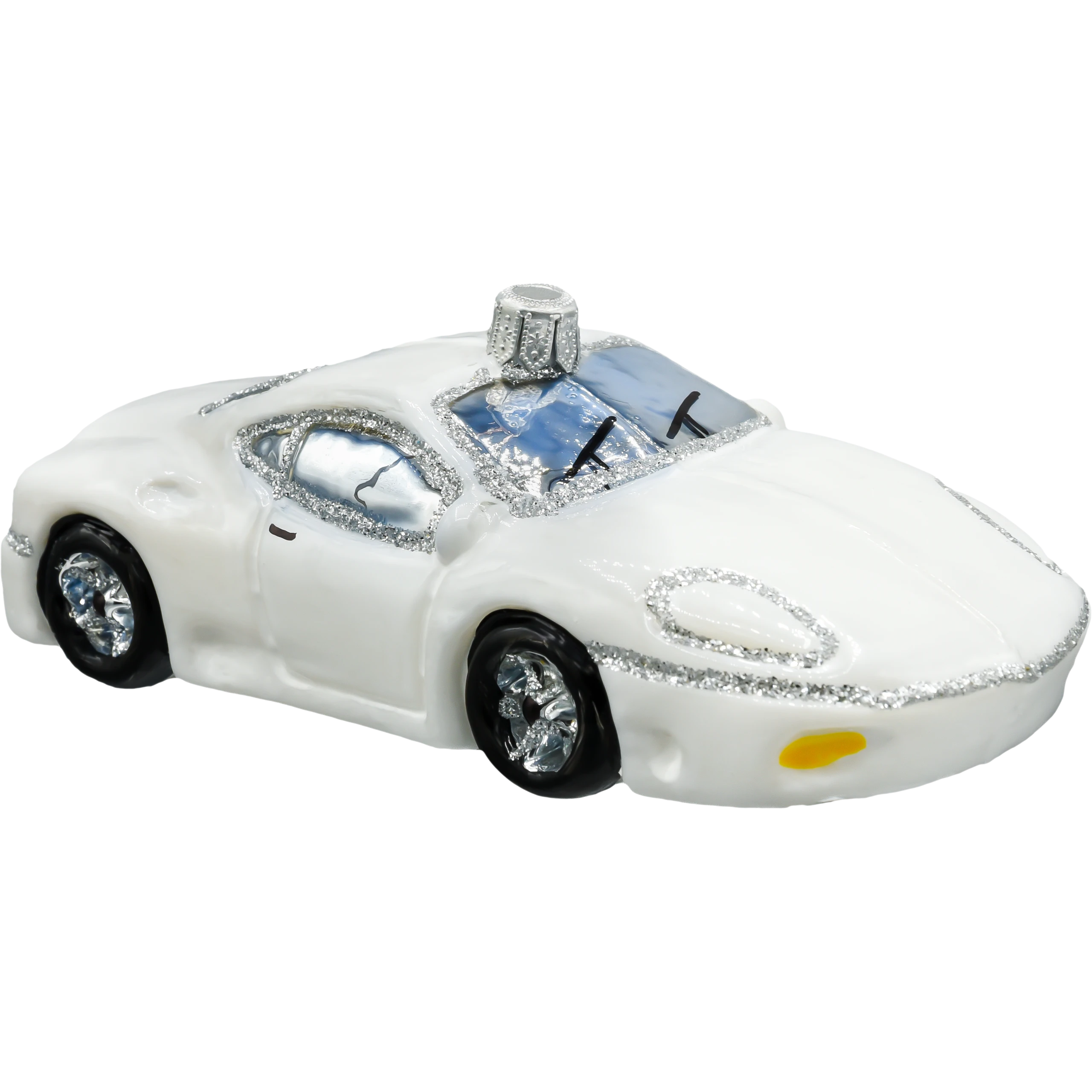 Bombka choinkowa biały sportowy samochód – nowoczesna ozdoba świąteczna dla fanów motoryzacji